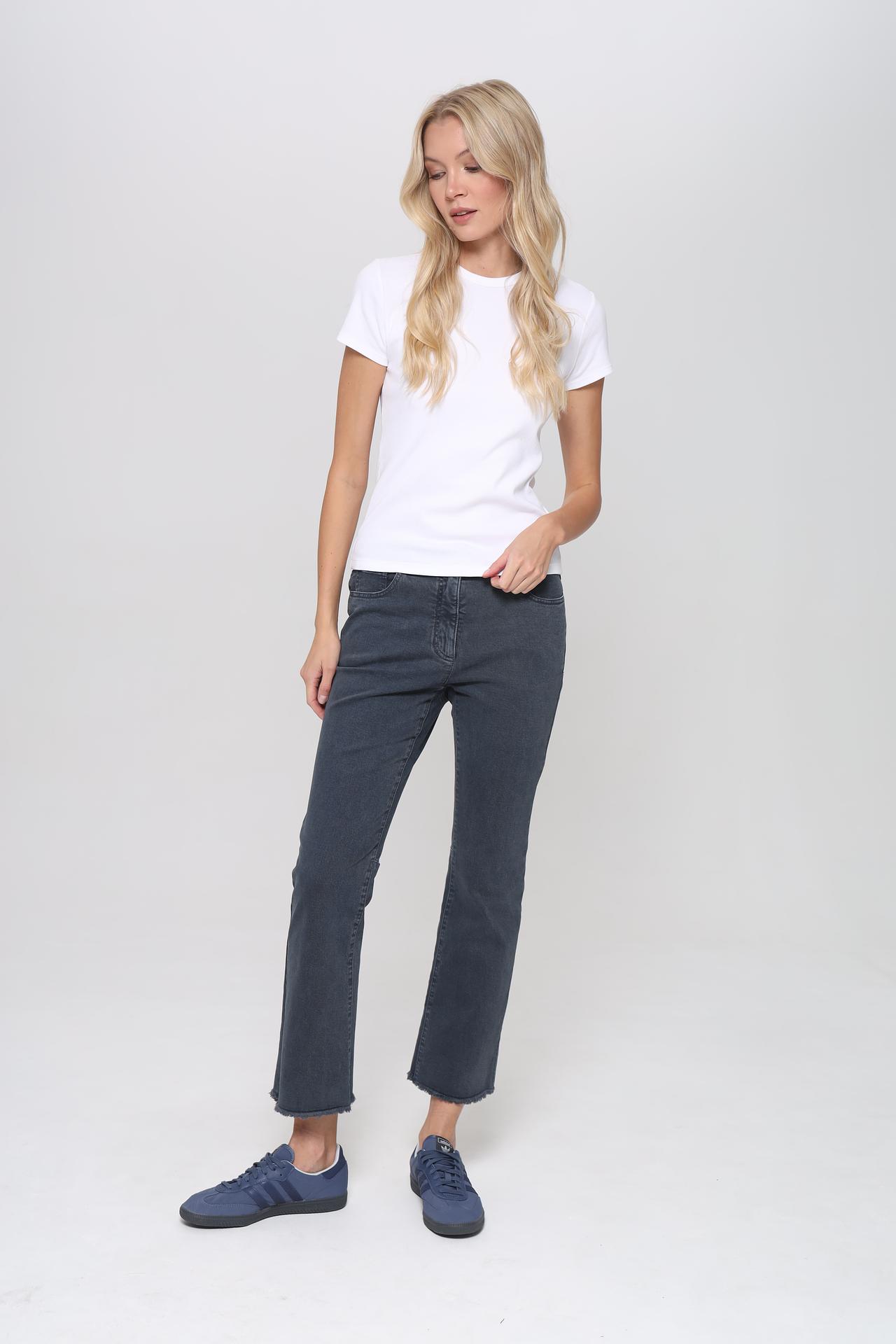 - Дизайн: Прямой крой с легким клешем от колена и необработанным краем брючин создает модный силуэт. Декоративная цепочка на поясе придает изделию особый шарм.