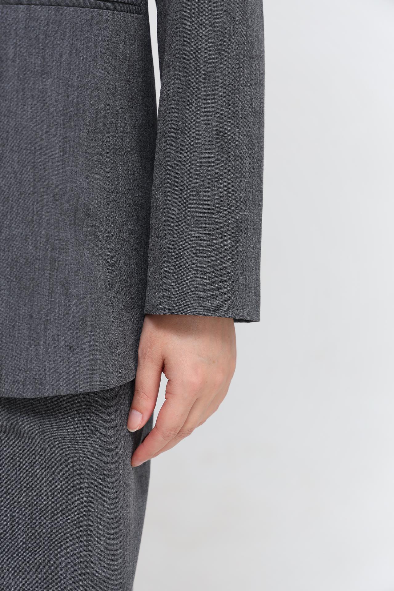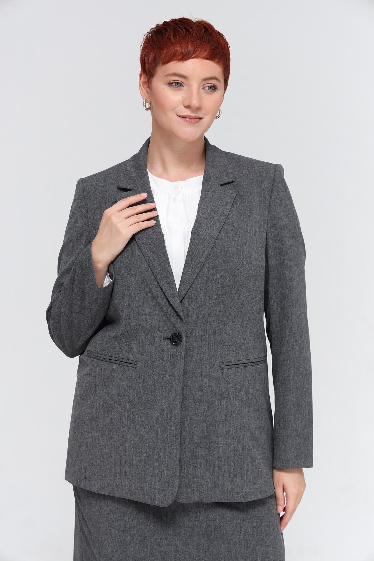 - Цвет: Глубокий серый цвет жакета является воплощением делового стиля и изысканности. Он прекрасно гармонирует с белыми блузами, создавая утонченный и профессиональный образ.