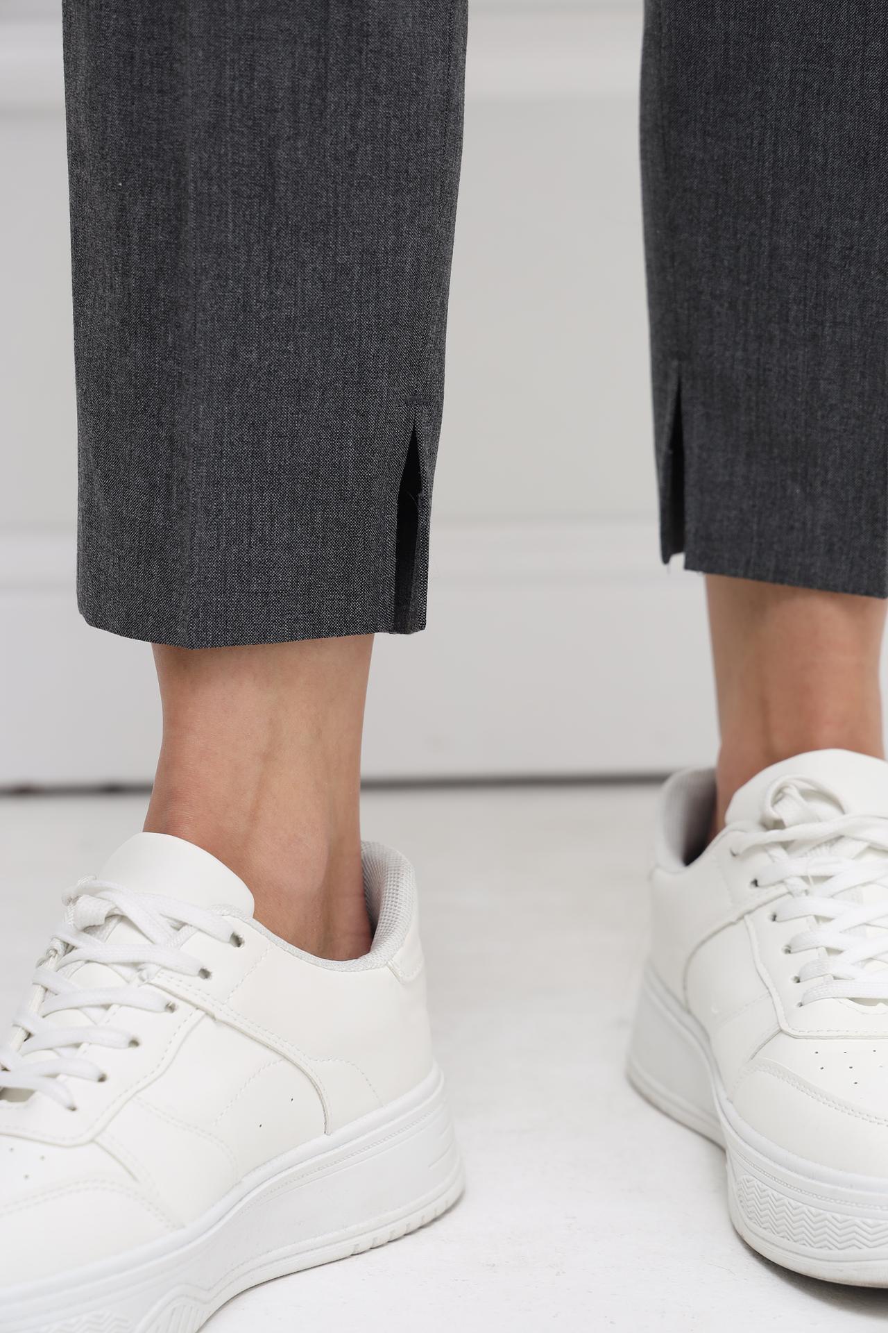 - Крой: Классический прямой крой с небольшой длиной до щиколотки и элегантными разрезами снизу. Брюки выгодно подчеркивают достоинства фигуры, создавая утонченный силуэт.
