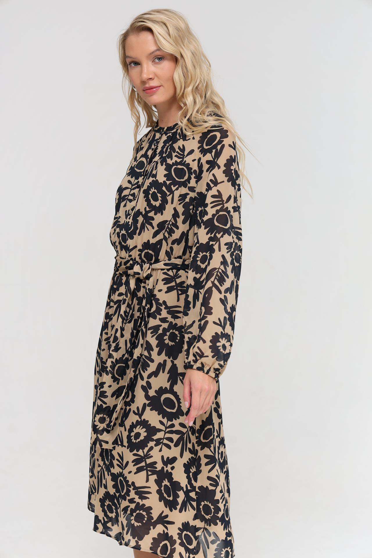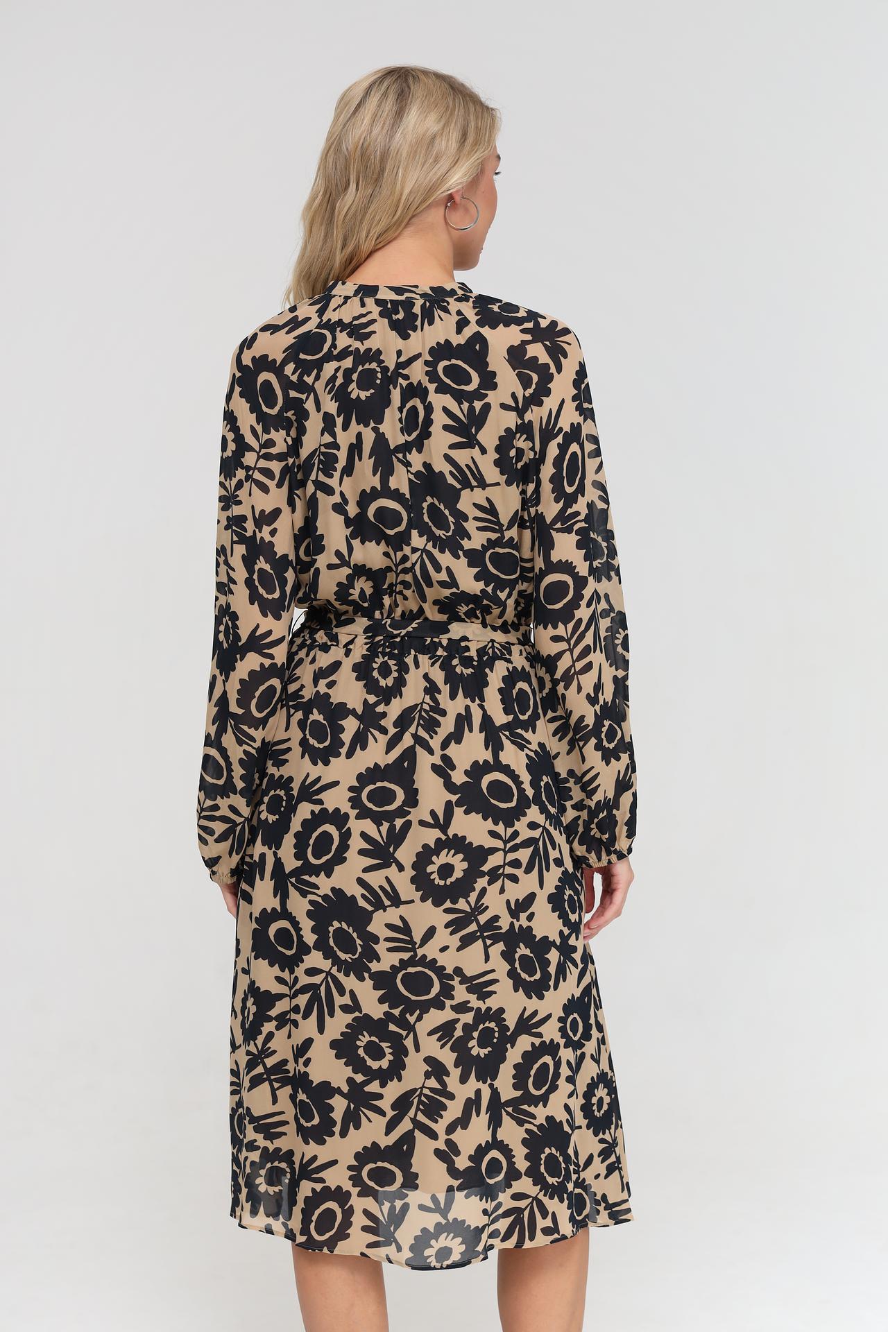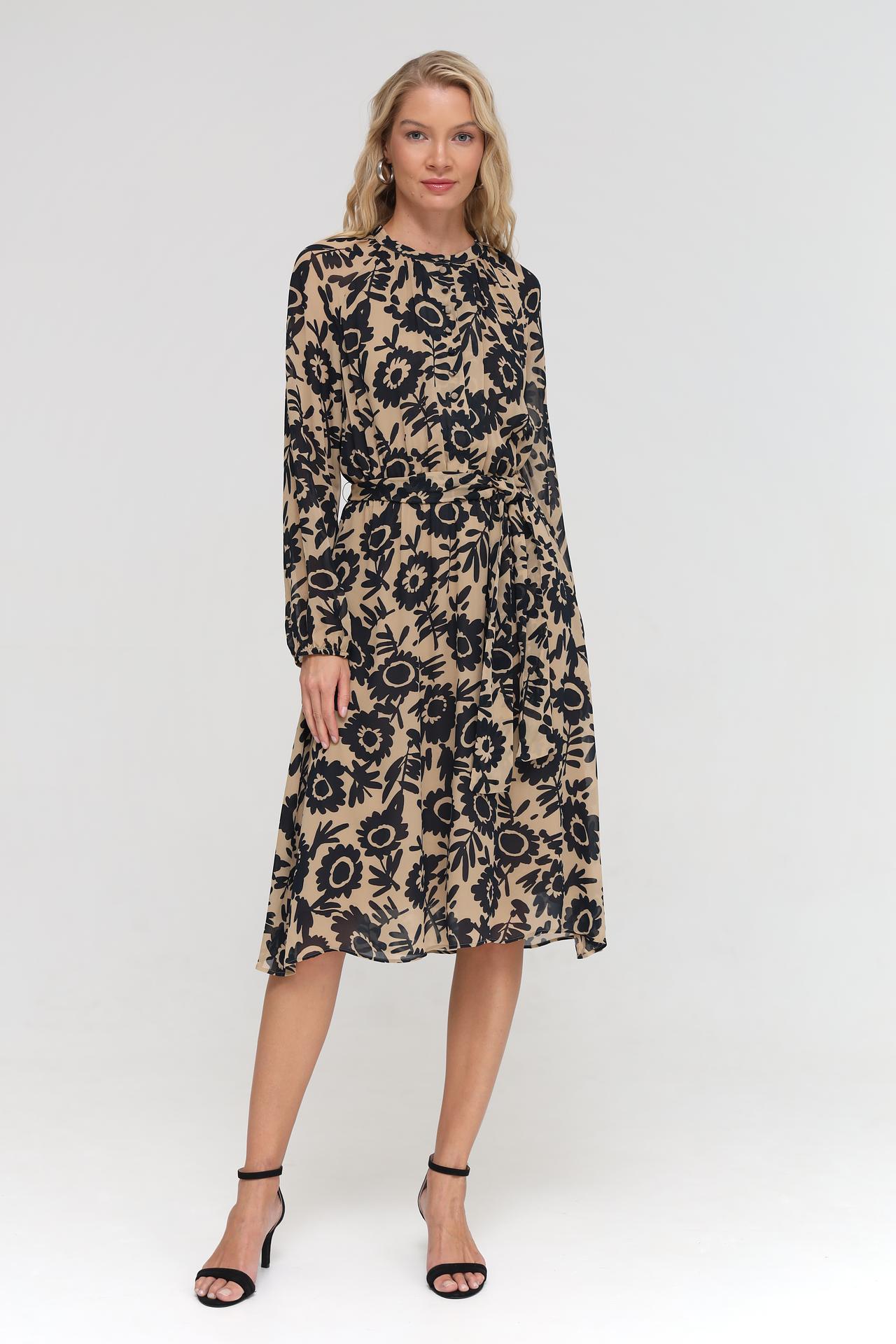 - Актуальный принт: Цветочный узор в черном цвете на бежевом фоне добавляет изысканности.
