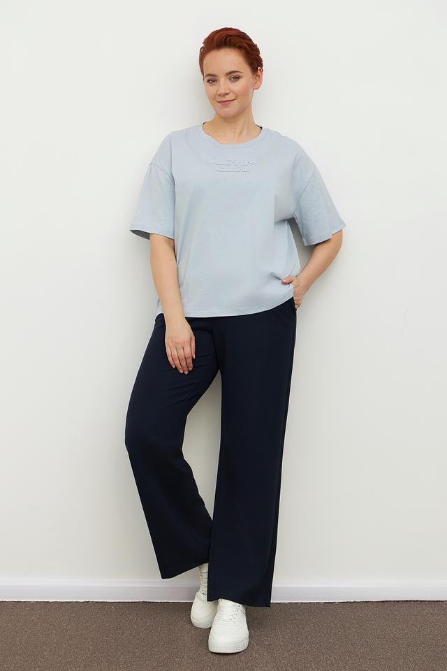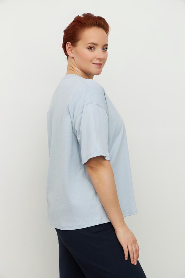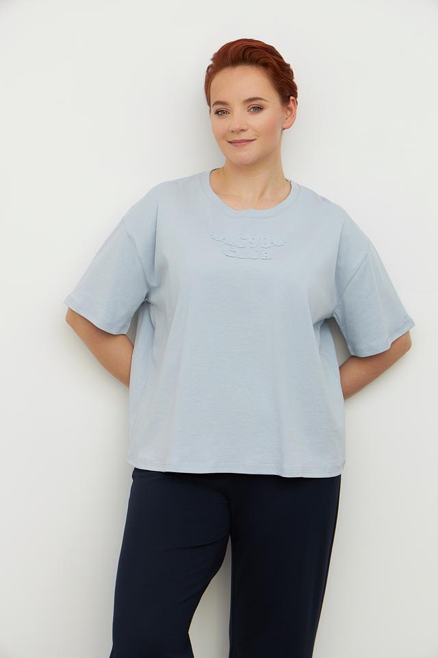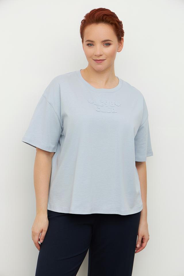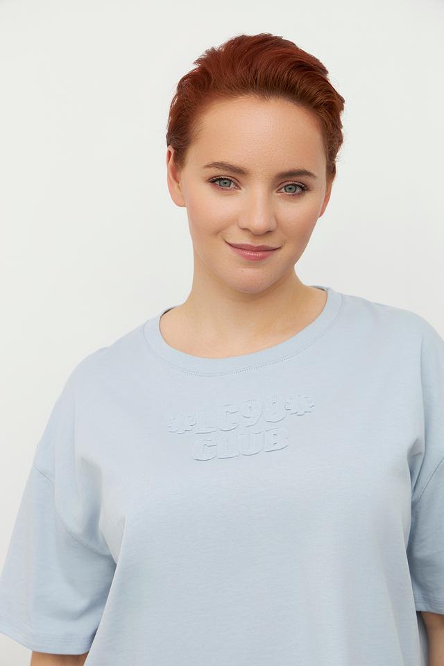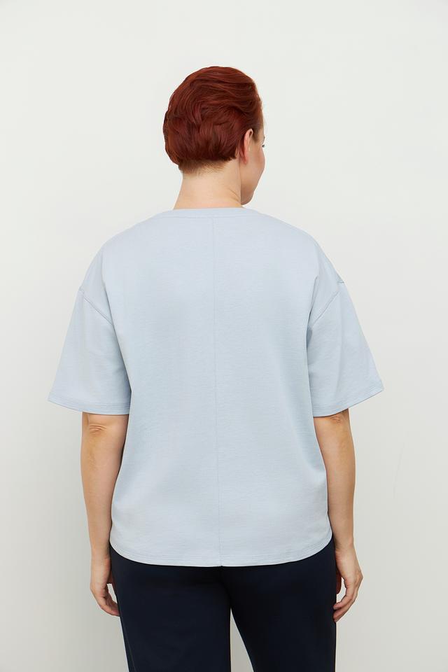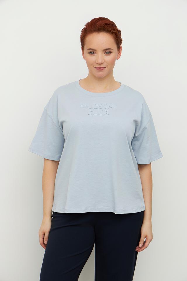 Женская футболка Luisa Cerano голубого цвета с вышивкой на горловине. Изготовлена из 100% хлопка, обеспечивающего комфорт и воздухопроницаемость. Состав: хлопок 100%