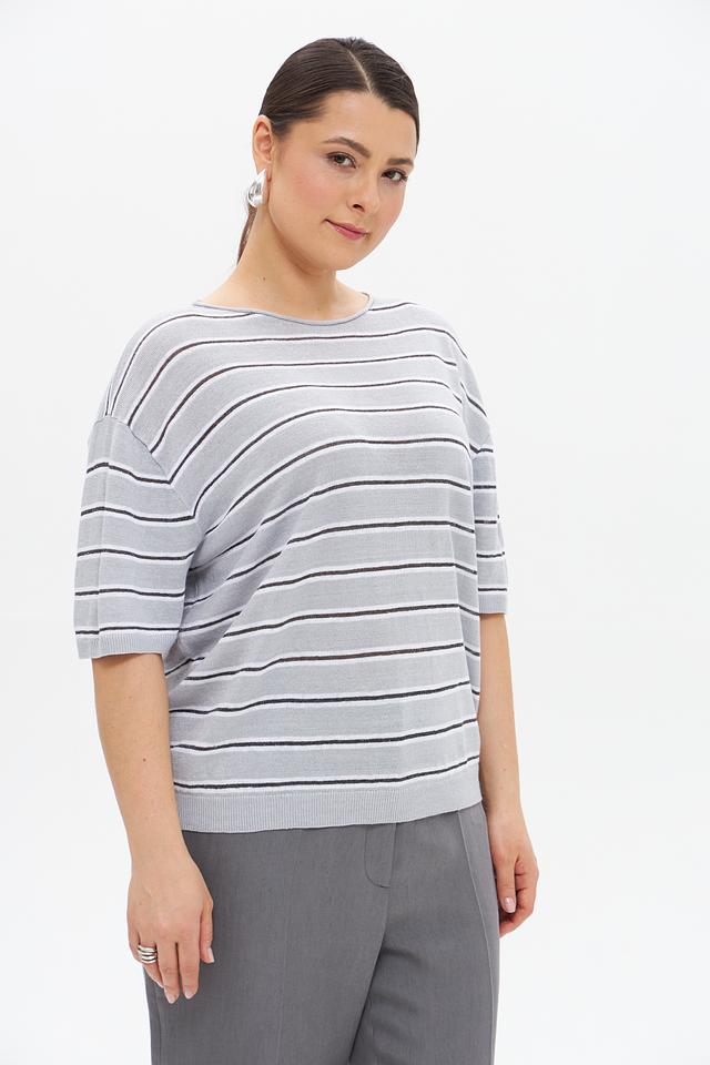 Женский пуловер Luisa Cerano серого цвета с полоской – это стильное и комфортное решение для повседневного гардероба. Модель свободного кроя с короткими рукавами выполнена из мягкого трикотажа, обеспечивающего удобство в носке. Состав: лен 90%, полиэстер 5%, вискоза 5%