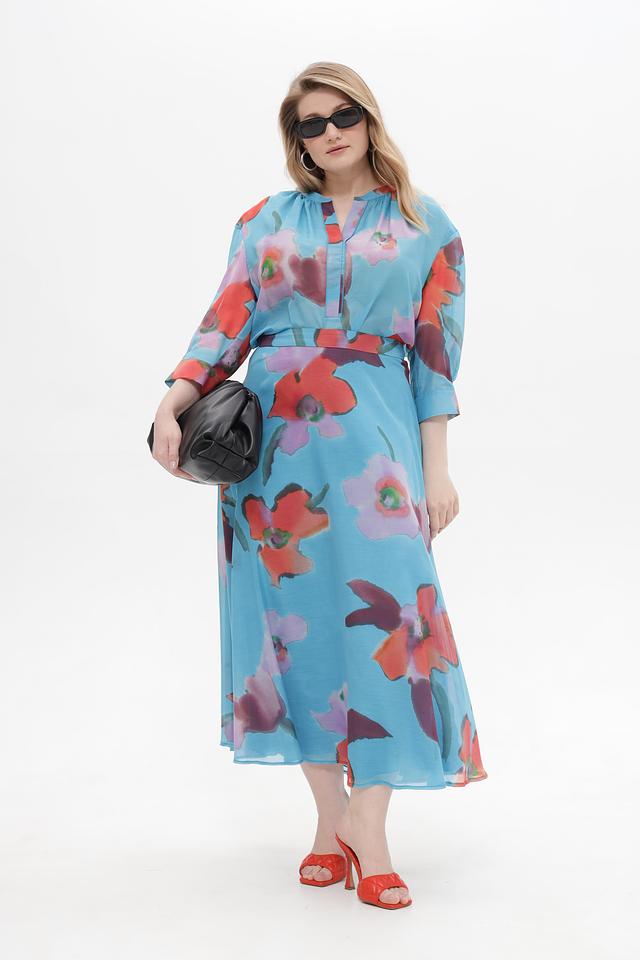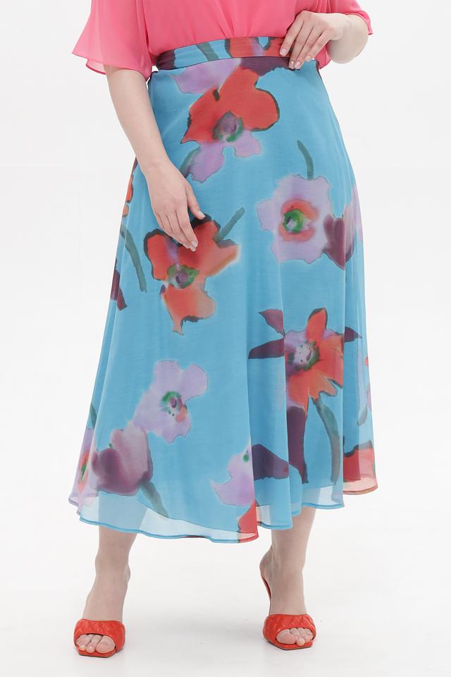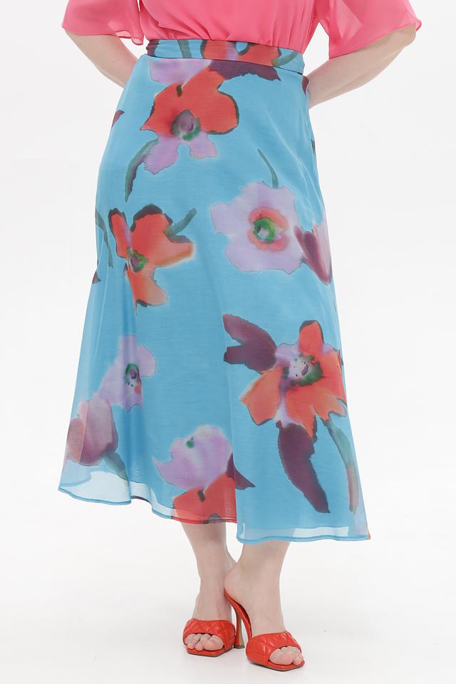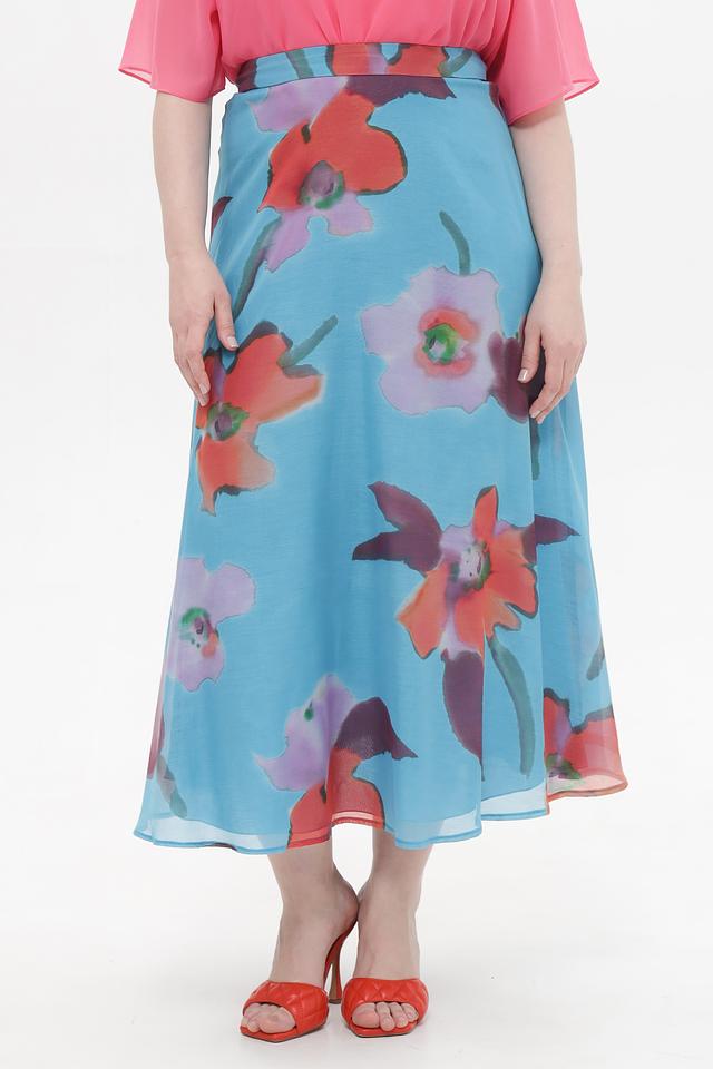 Юбка Luisa Cerano небесно-голубого цвета с ярким цветочным принтом. Изготовлена из хлопка с добавлением шелка для мягкости и комфорта. Идеальный выбор для создания элегантного и женственного образа. Состав: хлопок 72%, шелк 28%
