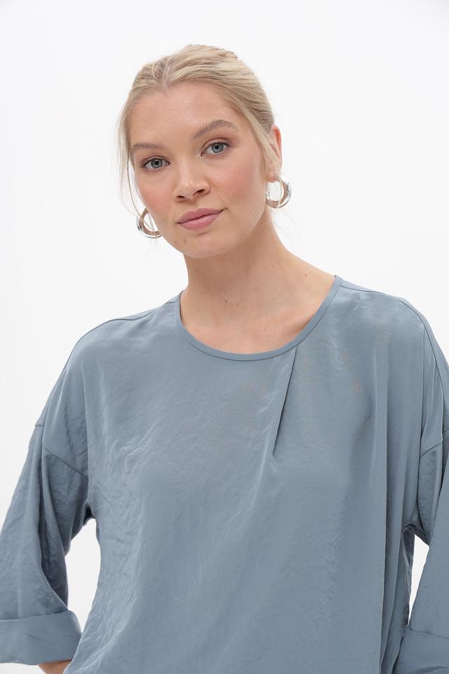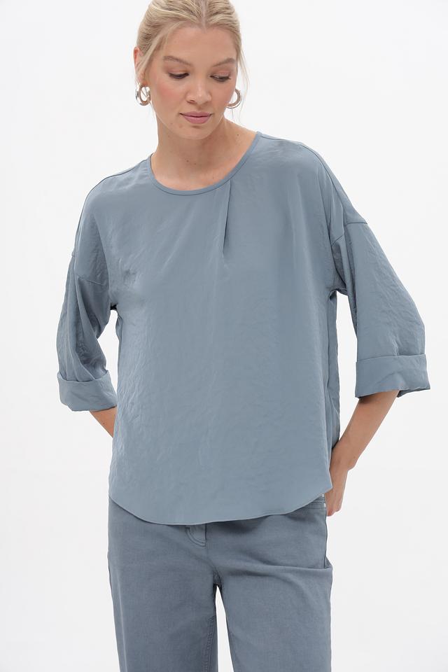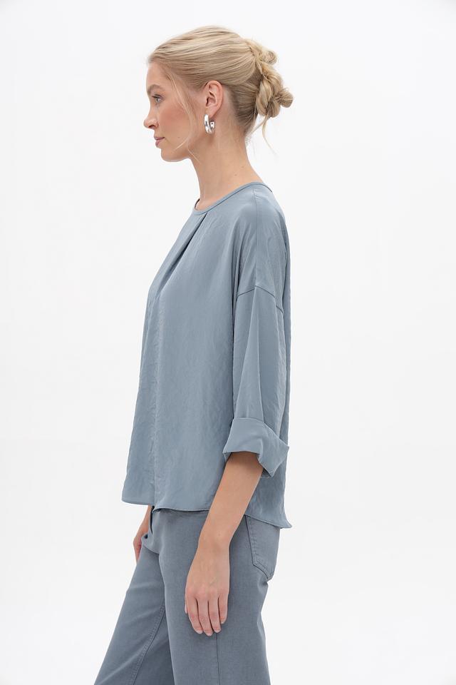 Благодаря своему лаконичному дизайну и спокойному голубому цвету, эта блузка станет отличным дополнением к вашему гардеробу.