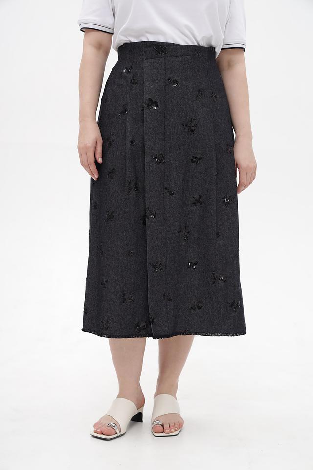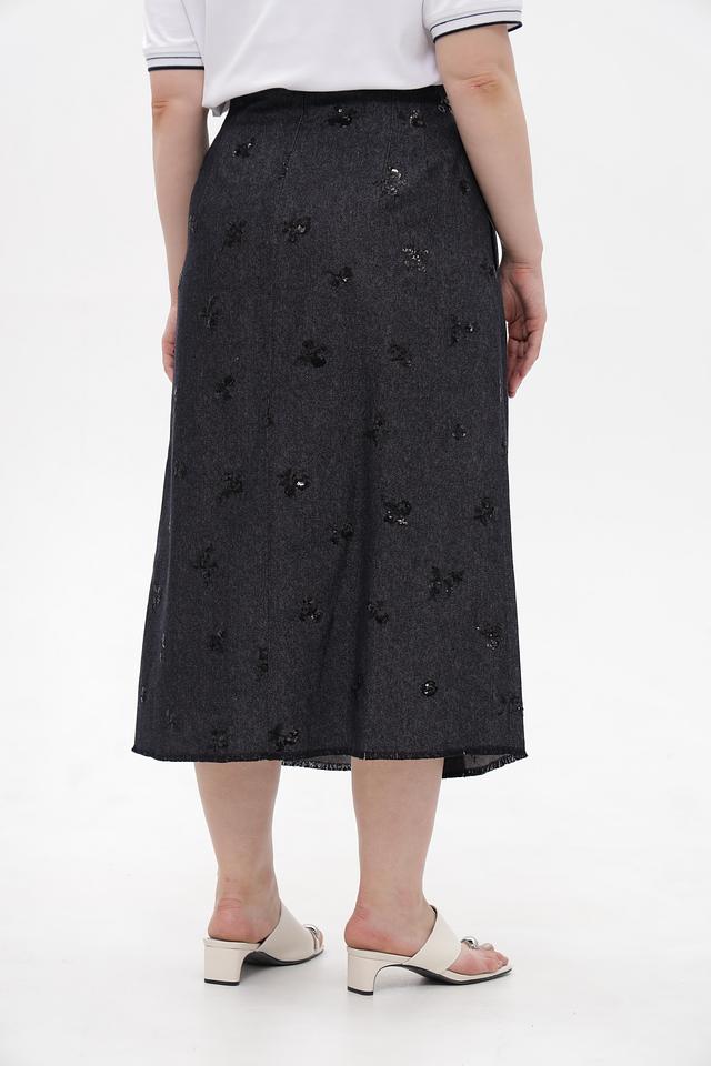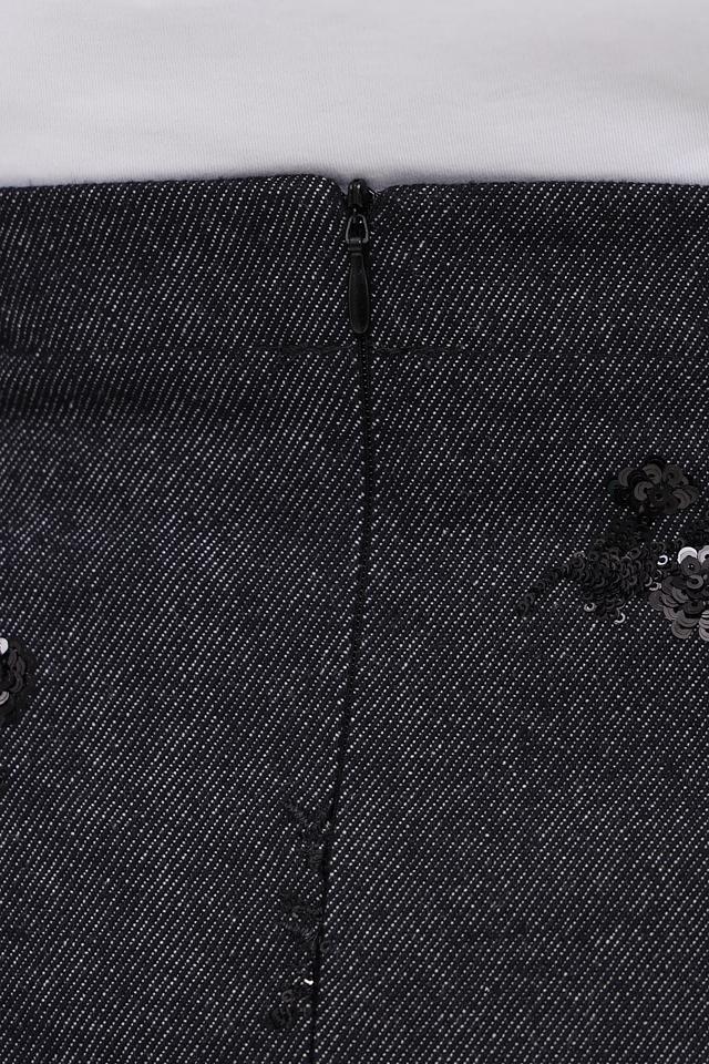 Представляем стильную юбку от бренда Luisa Cerano. Модель выполнена в сером цвете и декорирована узорами из вышивки.