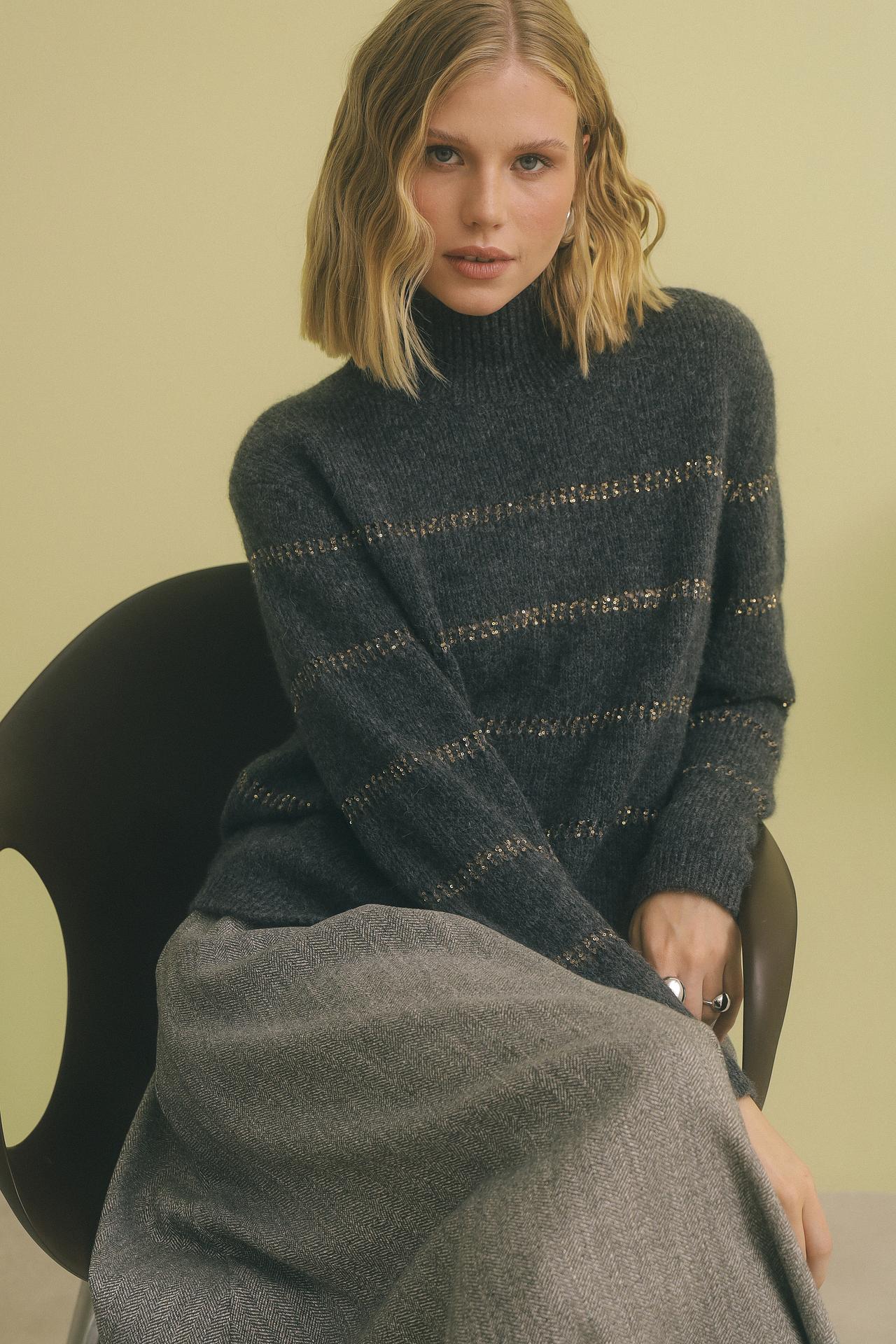 Пуловер Luisa Cerano серый с золотистыми полосами