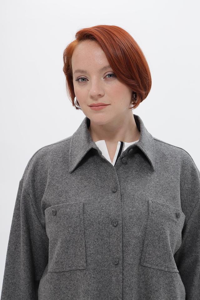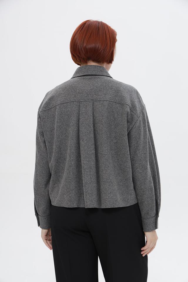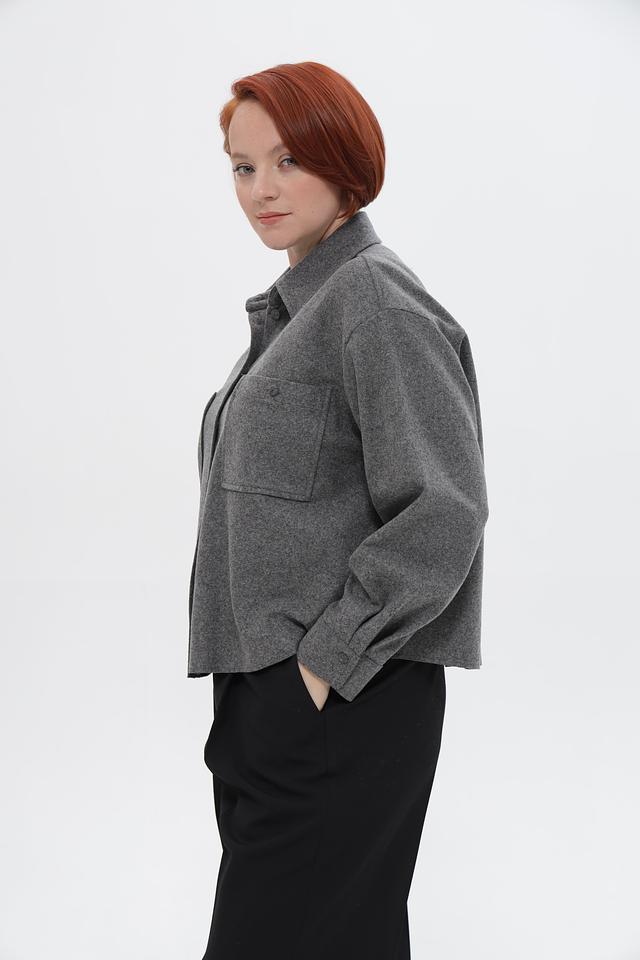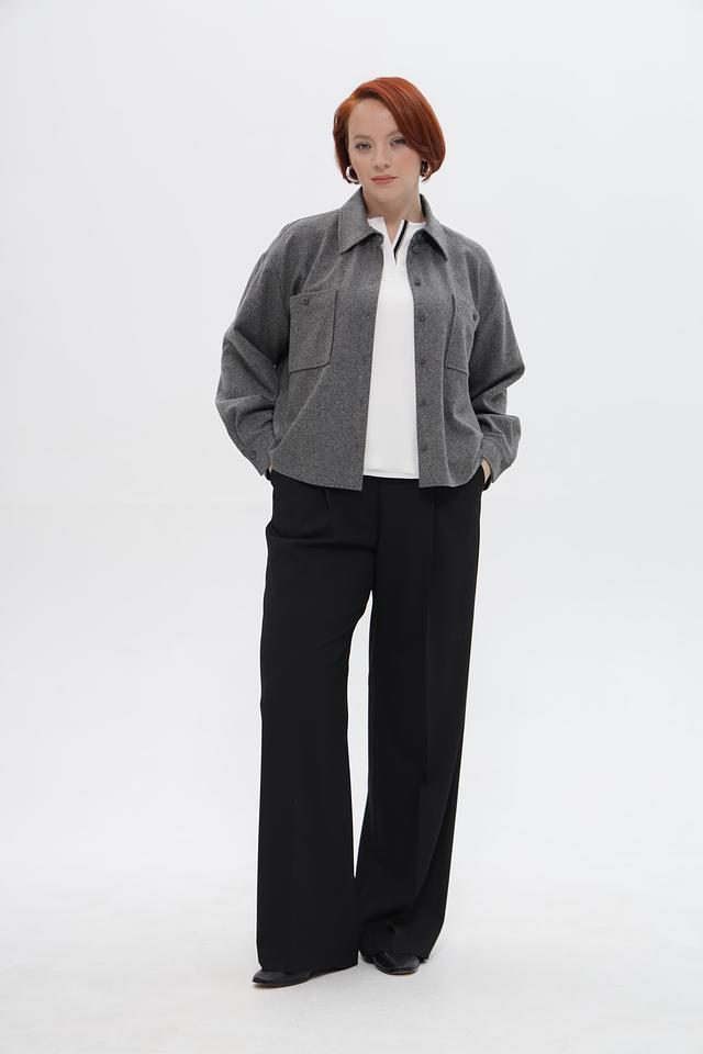 Жакет имеет классический крой, длинные рукава и застегивается на пуговицы. Накладные карманы добавляют практичности и непринужденности образу.