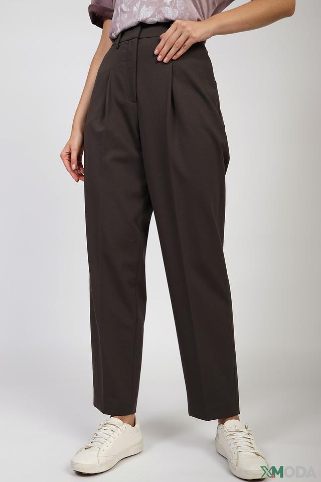 Брюки имеют прямой крой и завышенную талию, что обеспечивает комфортную посадку и подчеркивает достоинства фигуры. Наличие складок придает брюкам элегантный и утонченный вид.