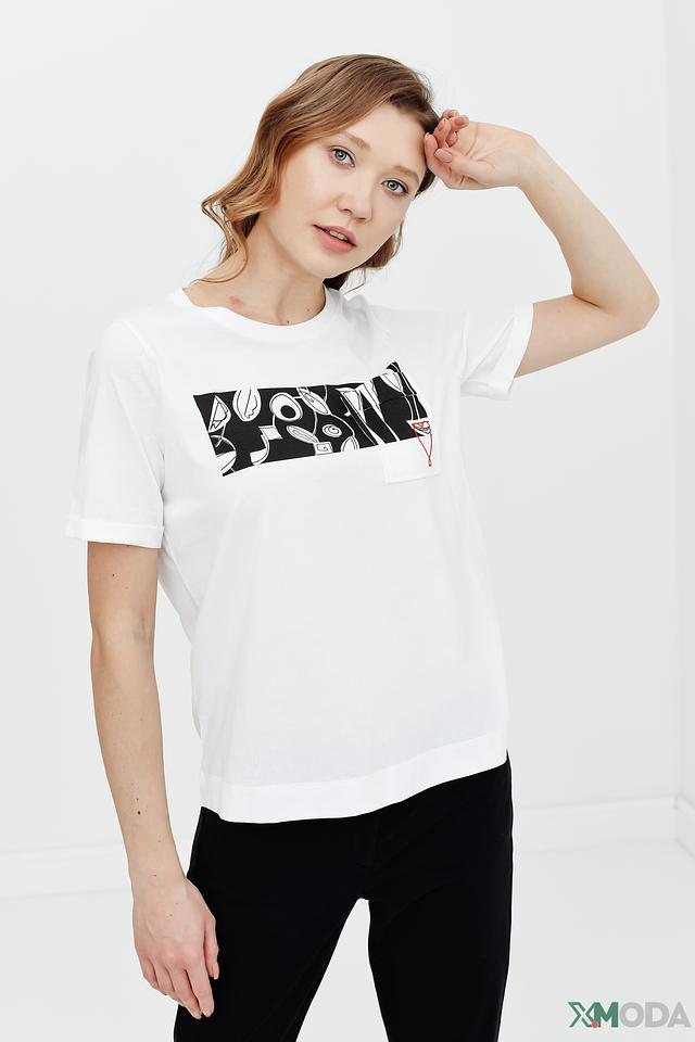 Белая футболка Luisa Cerano с оригинальным графичным принтом на передней части. Изготовлена из 100% хлопка, обеспечивающего комфорт и воздухопроницаемость. Стильный и лаконичный дизайн делает эту футболку универсальным элементом гардероба. Состав: хлопок 100%