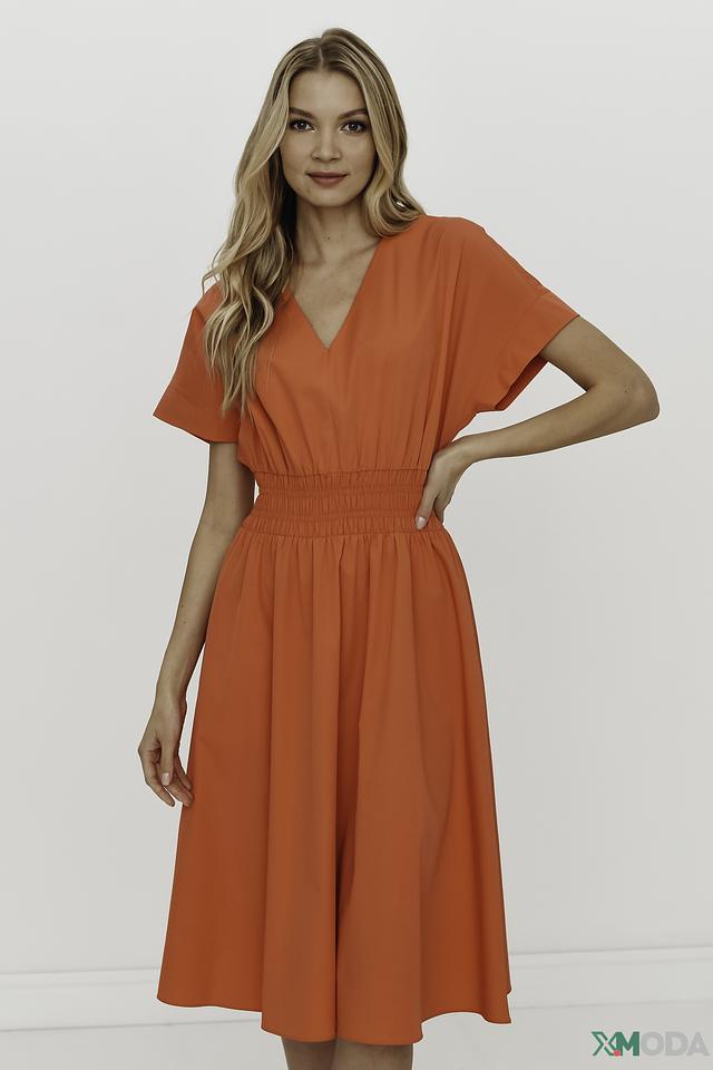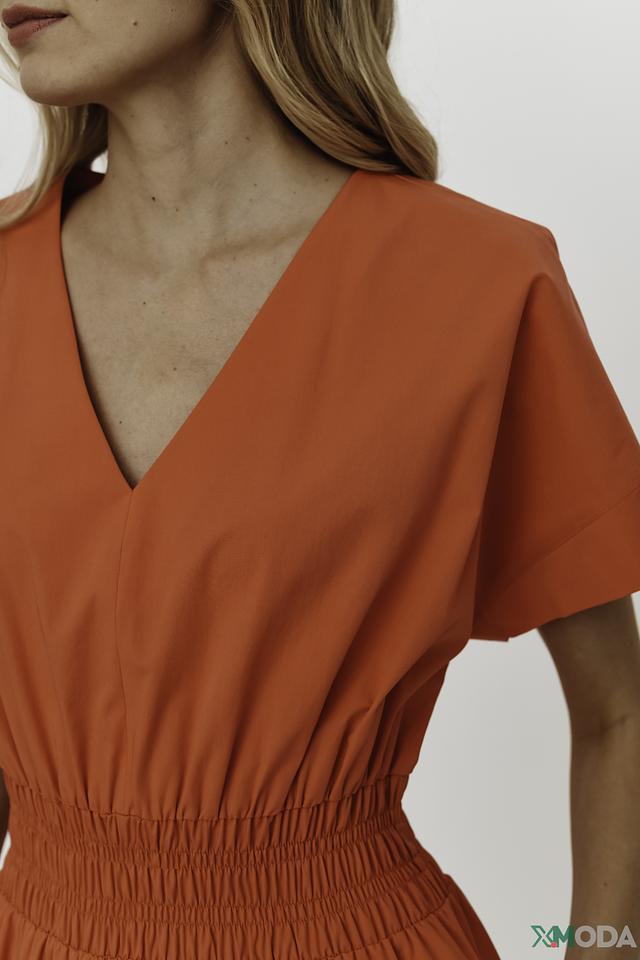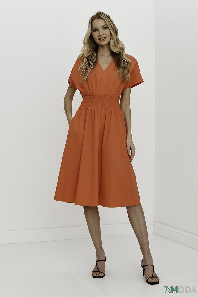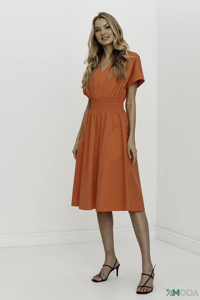 Оранжевое платье от Luisa Cerano – это стильное и комфортное решение для создания женственного образа. Платье имеет V-образный вырез, короткие рукава и эластичную сборку на талии, подчеркивающую фигуру. Состав: хлопок 93%, эластан 7%