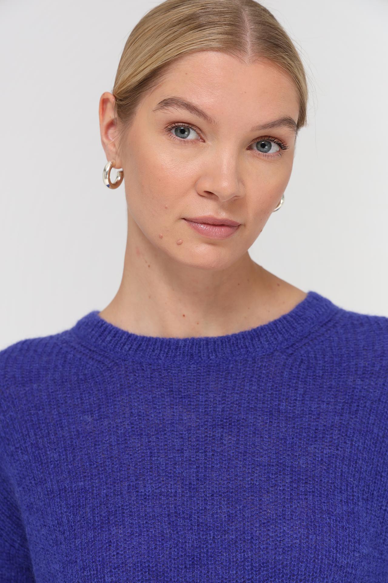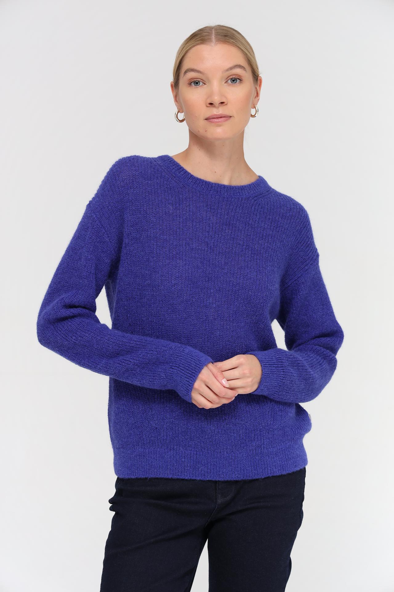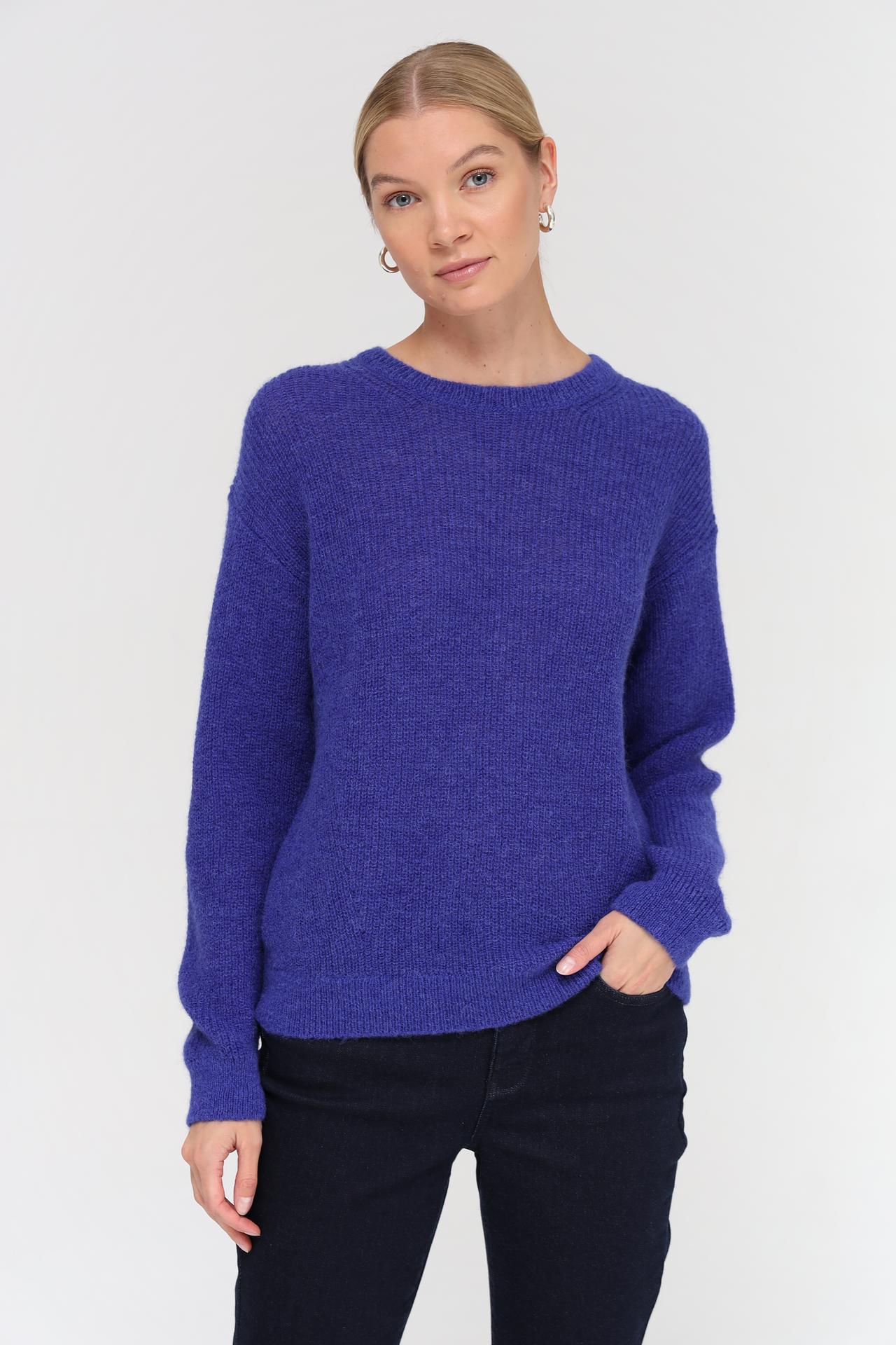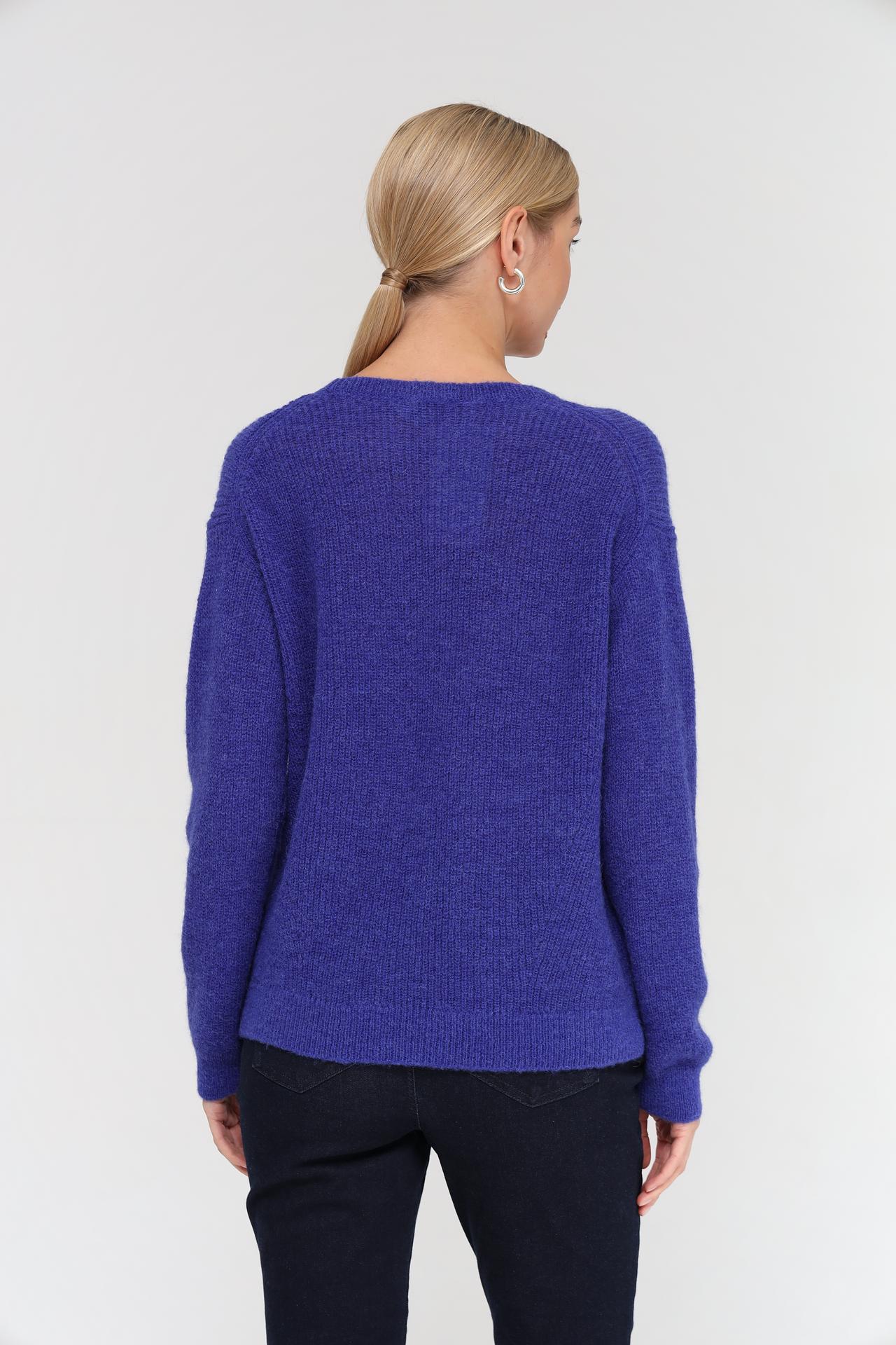 - Насыщенный цвет: Глубокий фиолетовый оттенок добавляет образу изысканности и выразительности. Фиолетовый пуловер легко сочетается с различными элементами гардероба.
