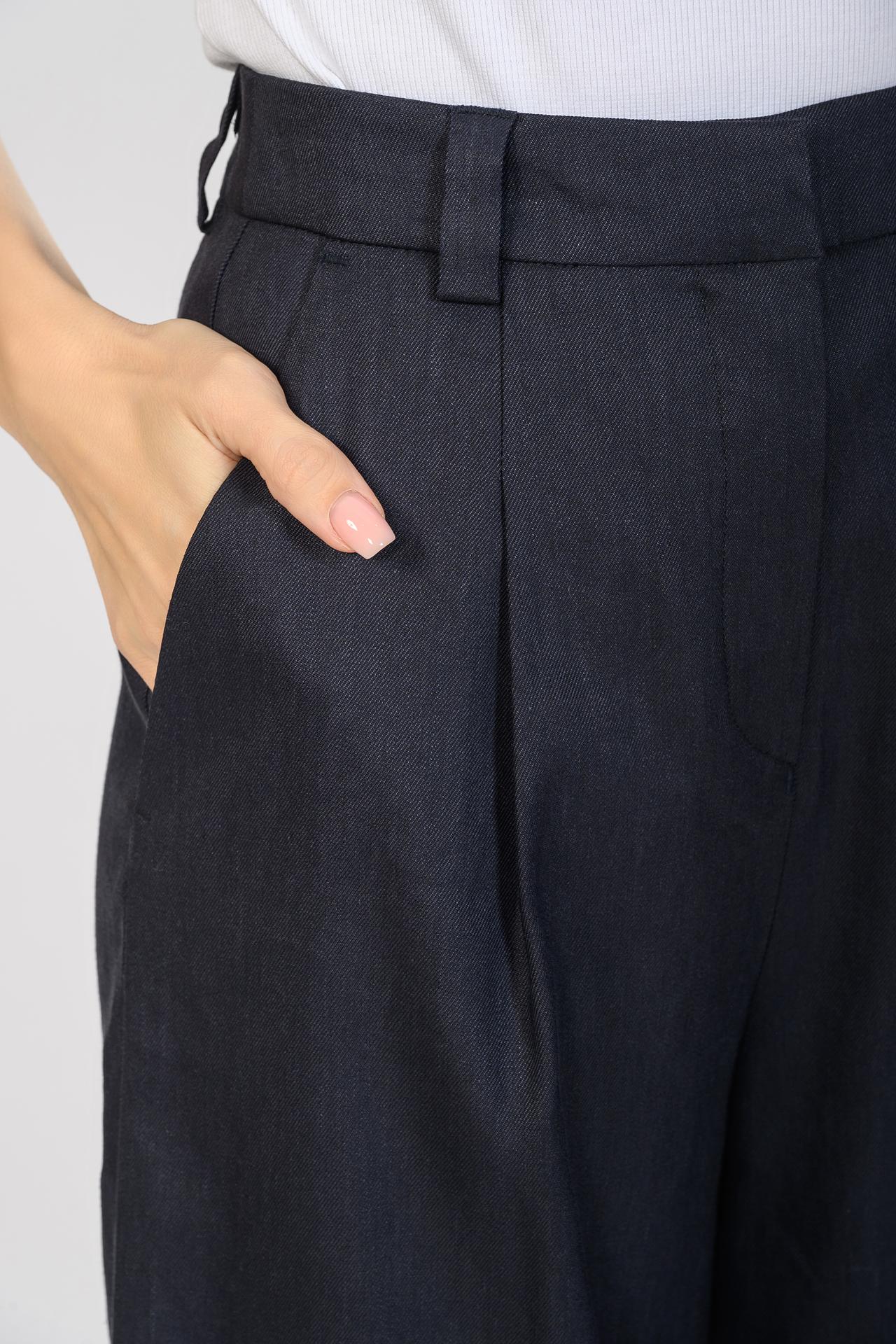 Брюки Malej кюлоты тёмно-синие из льна с вискозой
