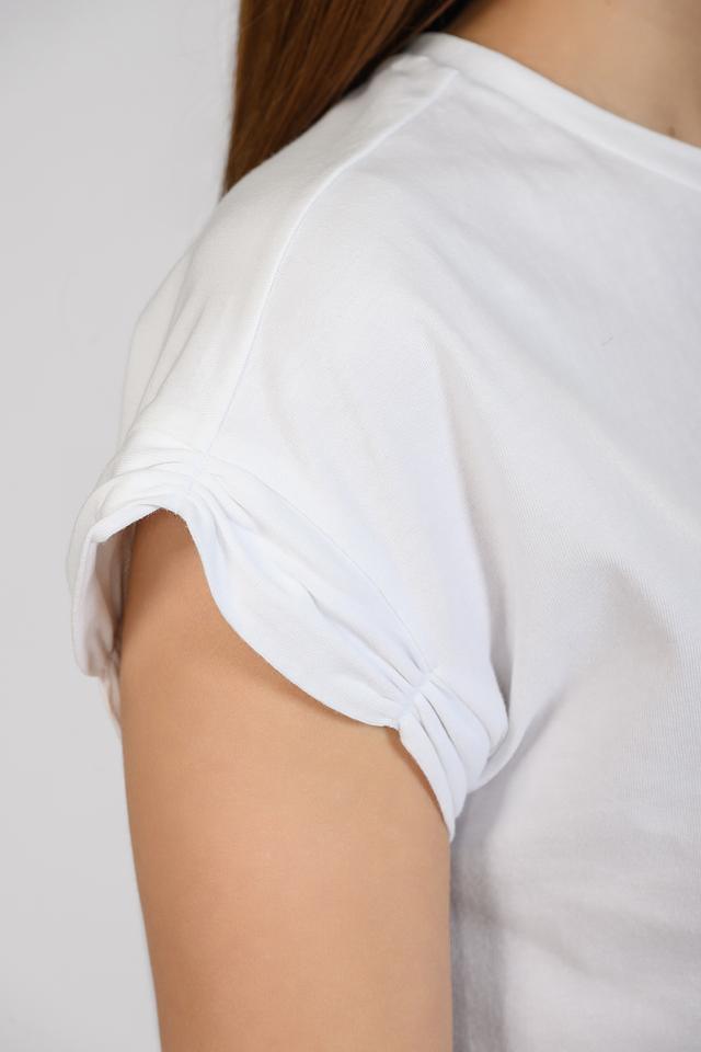Особенностью данной модели являются короткие рукава-буфы, которые придают образу женственность и оригинальность. Футболка выполнена из высококачественного 100% хлопка, что обеспечивает максимальный комфорт при носке и позволяет коже дышать.
