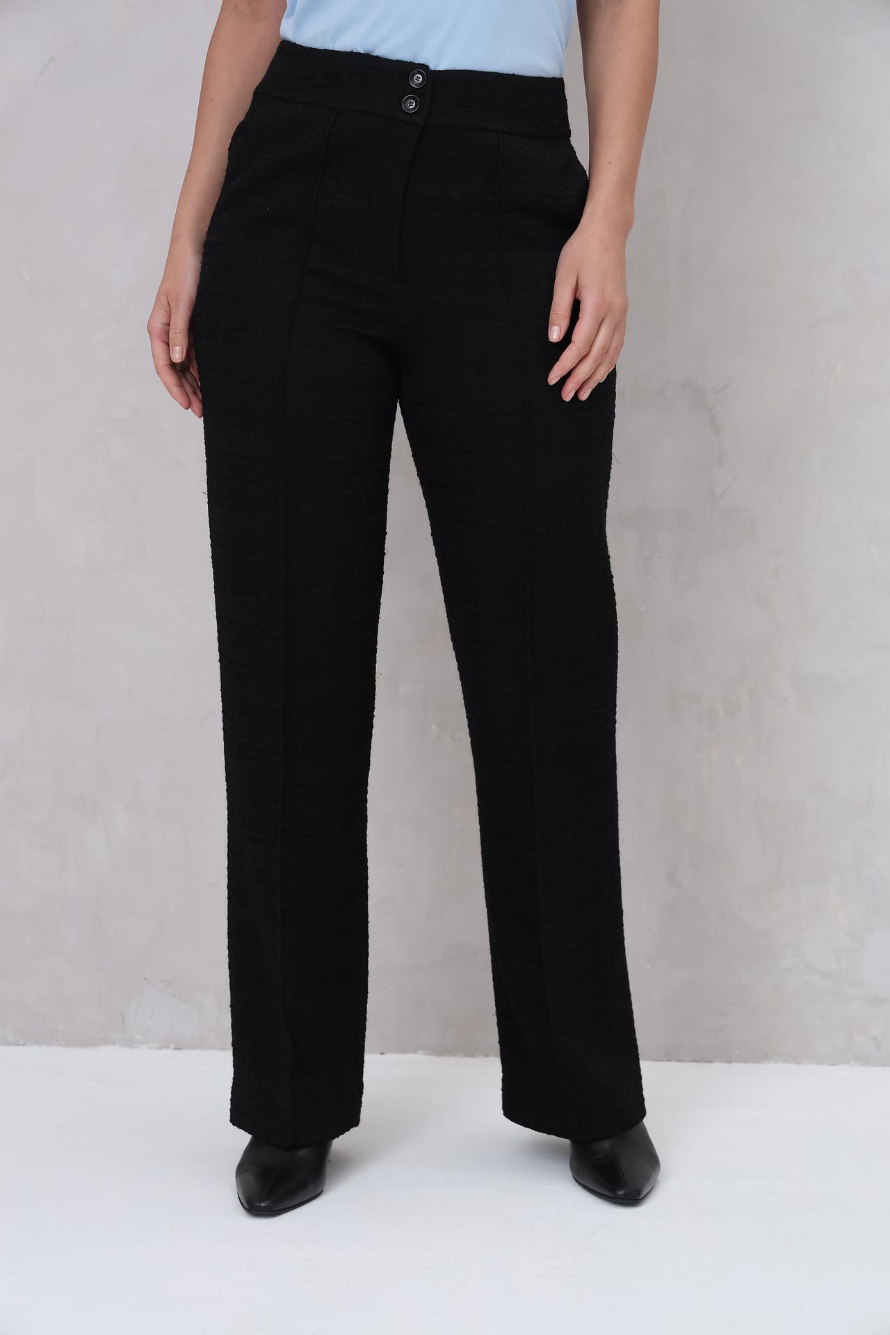 - Дизайн: Классический прямой крой с акцентированным поясом и двумя пуговицами. Строгие линии и минималистичный дизайн делают эти брюки универсальной основой для множества образов, от деловых до повседневных.