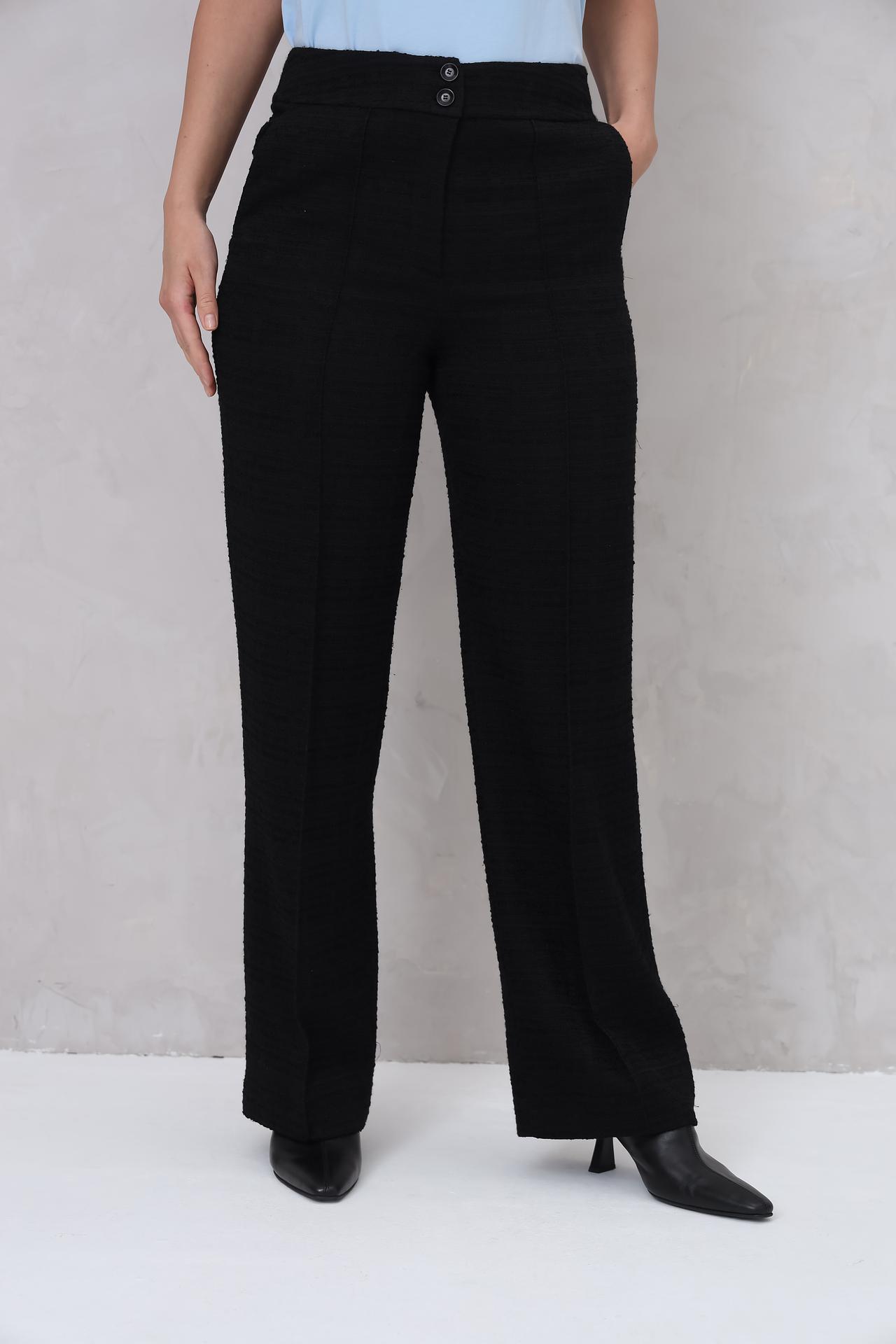 - Текстура: Материал обладает выраженной текстурой, которая придает изделию особый шик и глубину. Это делает брюки эффектными и стильными, выделяя их среди обычных моделей.