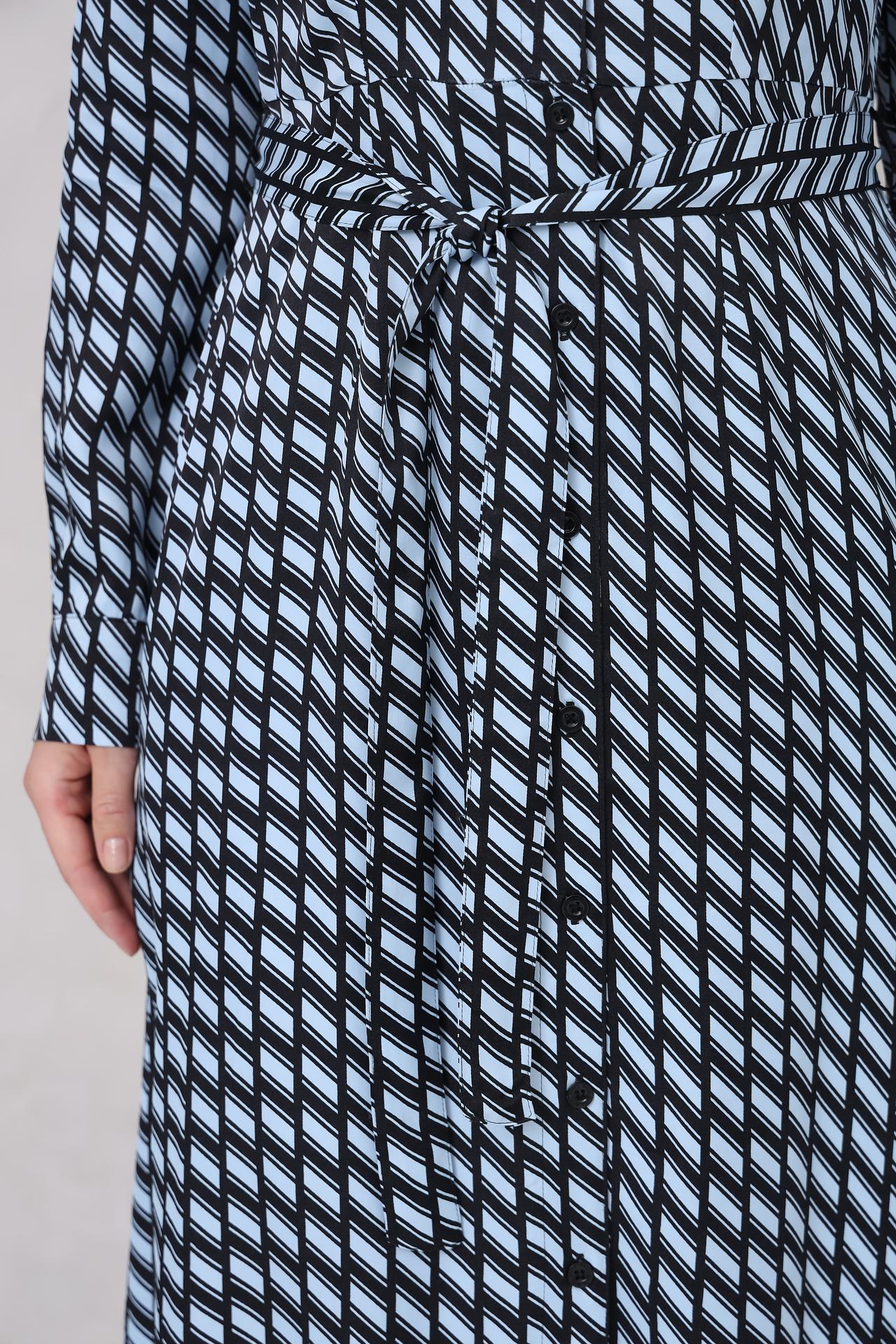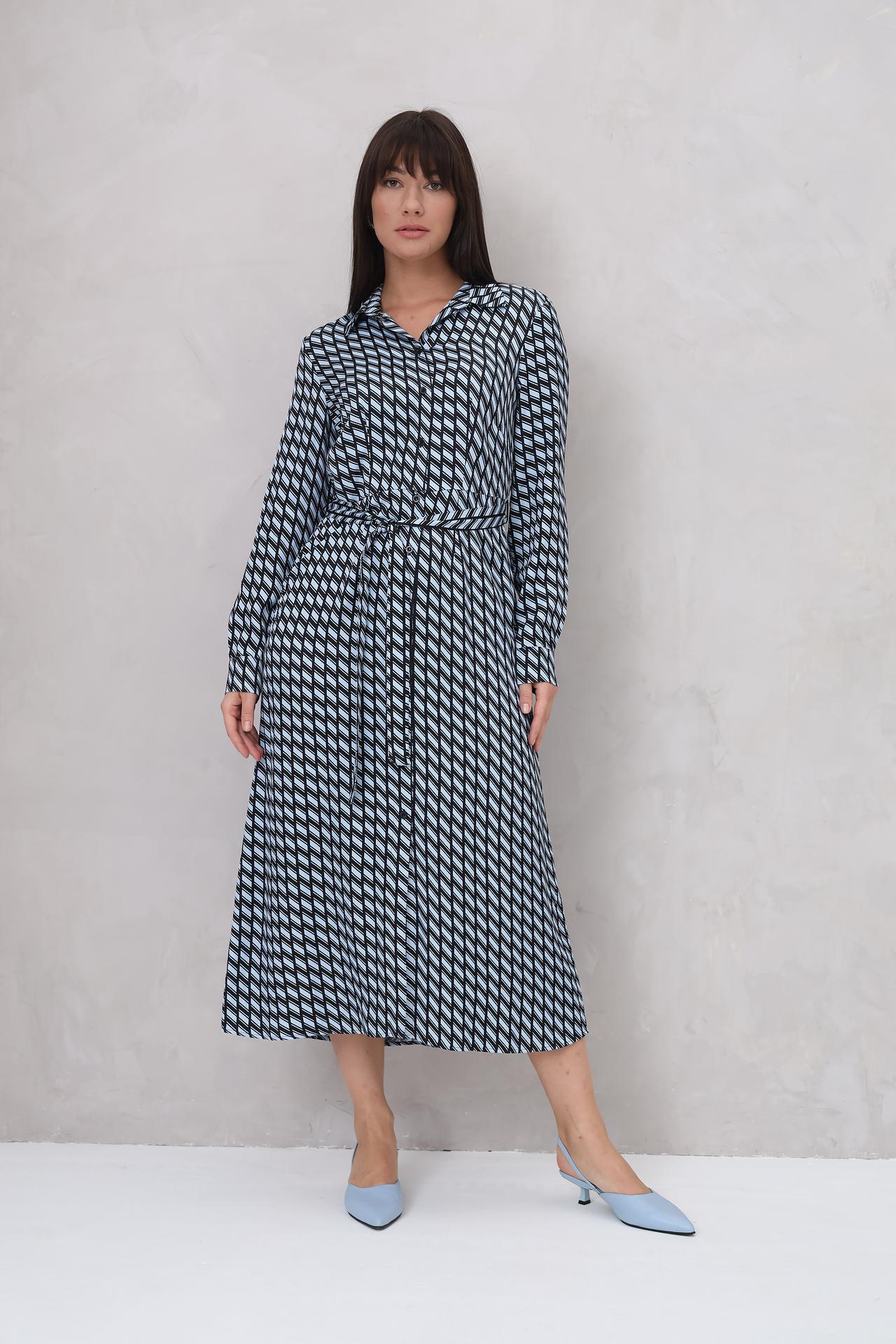 Изысканное платье-рубашка от Marc Aurel, выполненное из 100% вискозы, станет прекрасным дополнением вашего гардероба. Лёгкая и приятная к телу ткань обеспечит комфорт в течение всего дня. Оригинальный геометрический принт придает образу современный и стильный вид.