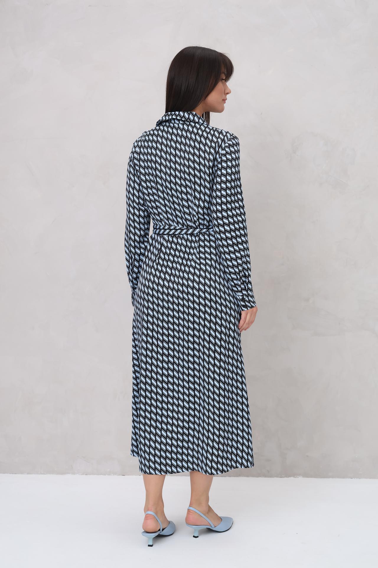 - Принт: Геометрический рисунок добавляет оригинальности и делает платье запоминающимся.
