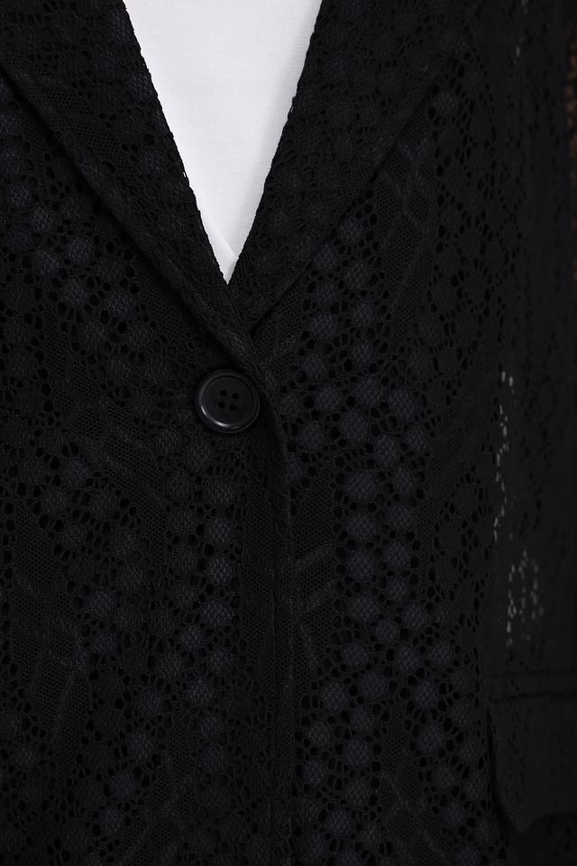 Чёрный жакет Marc Aurel из кружевного полотна станет эффектным дополнением к вашему гардеробу. Классический крой и полупрозрачная текстура создают изысканный и современный образ. Состав: полиэстер 90%, эластан 10%