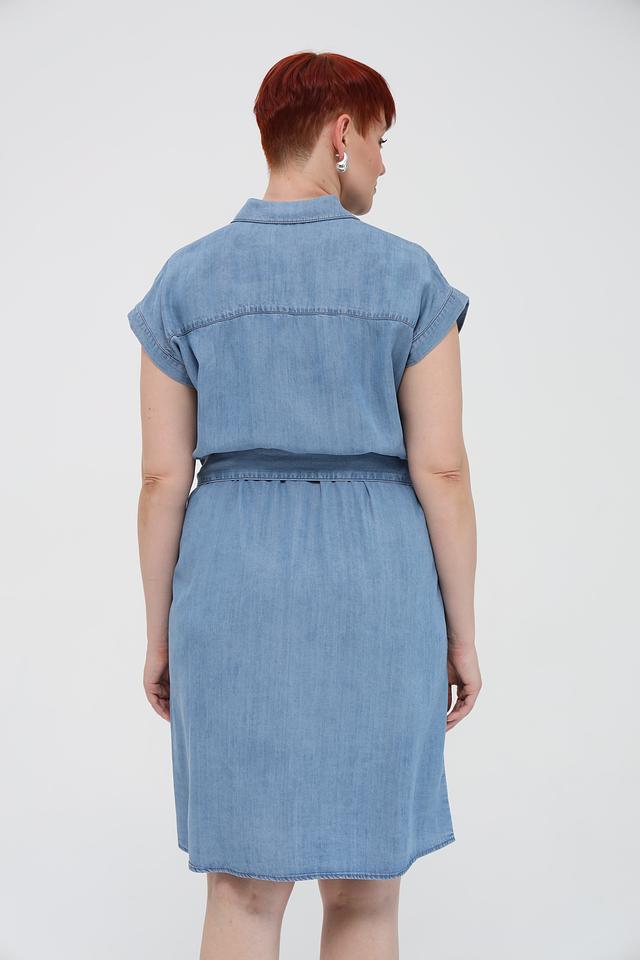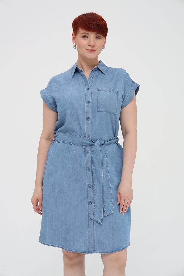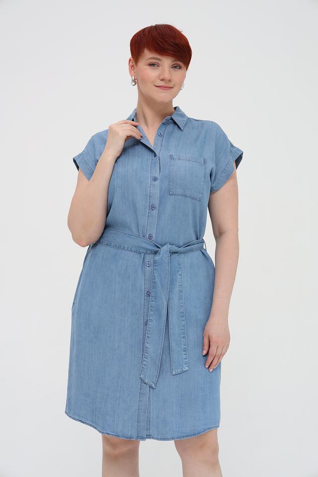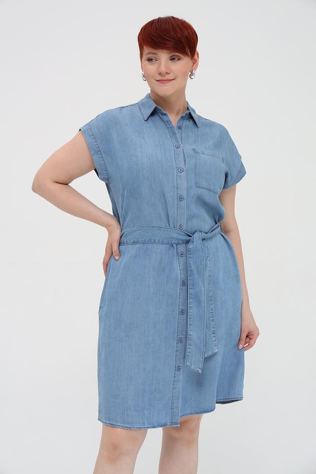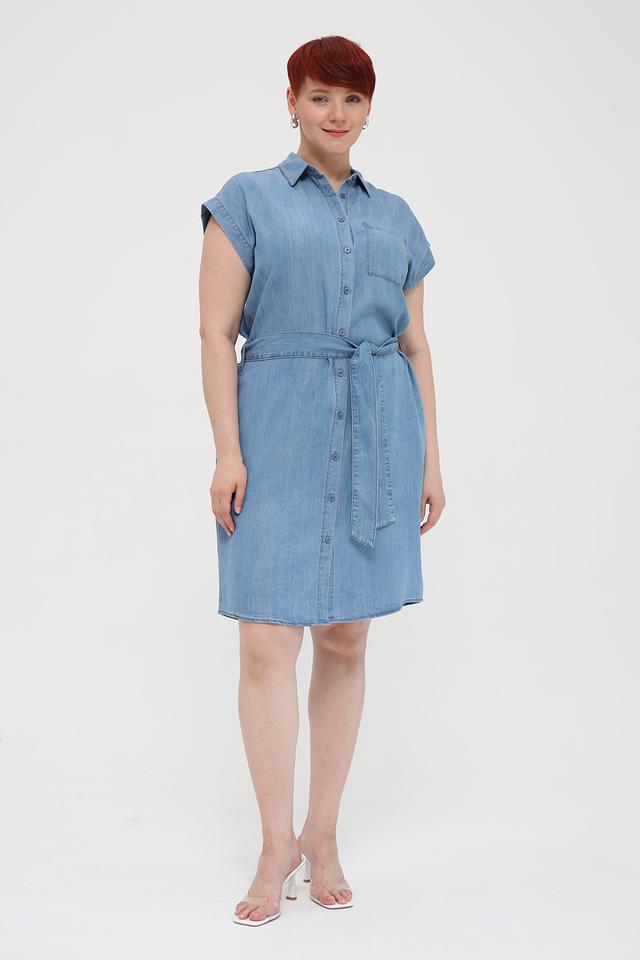 Платье имеет боковые карманы и пояс, который можно завязать на талии, чтобы подчеркнуть фигуру. Голубой цвет платья универсален и легко сочетается с различными аксессуарами и обувью. Это платье станет отличным дополнением к вашему гардеробу и позволит создать множество стильных образов.