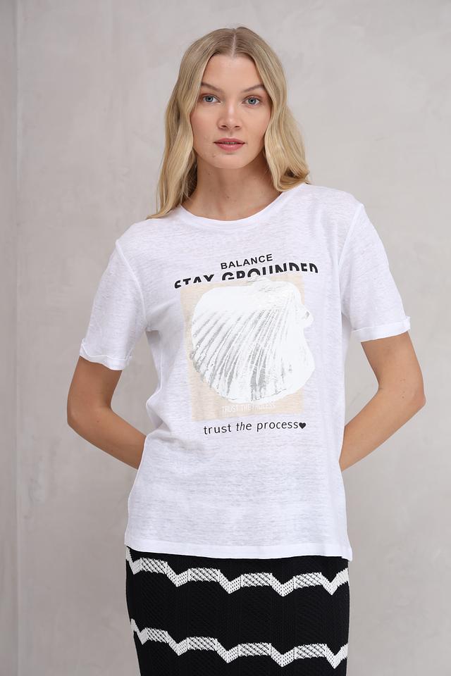 Белая футболка Marc Aurel из 100% льна с оригинальным принтом. Лёгкий и дышащий материал делает эту футболку идеальным выбором для летнего гардероба. Свободный крой обеспечивает комфорт в носке. Состав: лен 100%