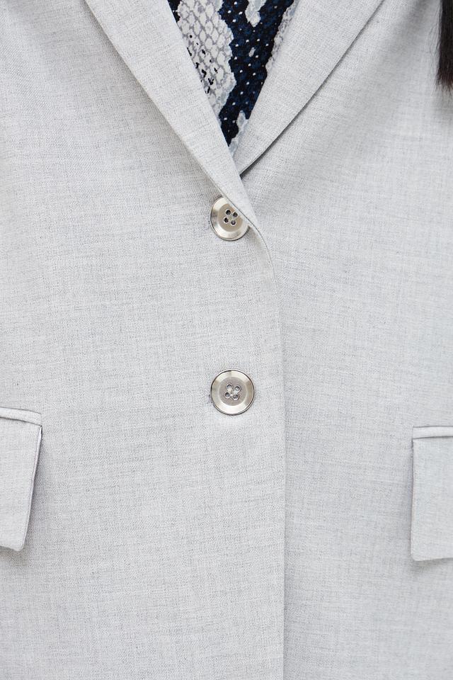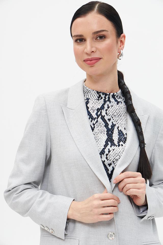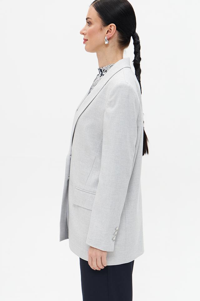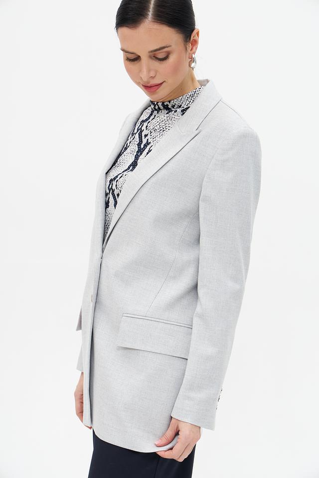Модель застегивается на одну пуговицу, что придает ей классический вид. Накладные карманы добавляют практичности и функциональности. Жакет выполнен из смеси полиэстера, вискозы и эластана, что обеспечивает приятные тактильные ощущения и хорошую износостойкость.