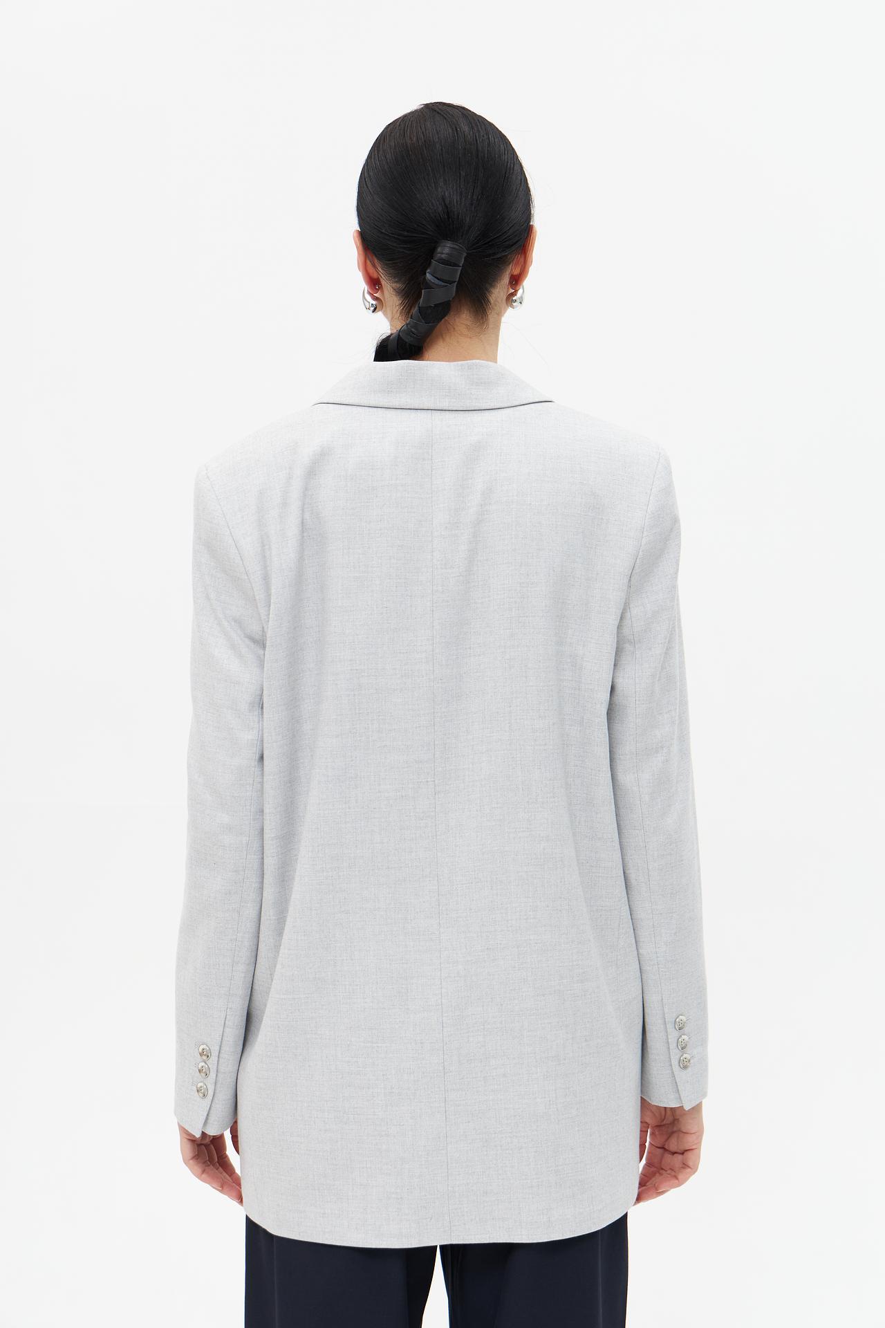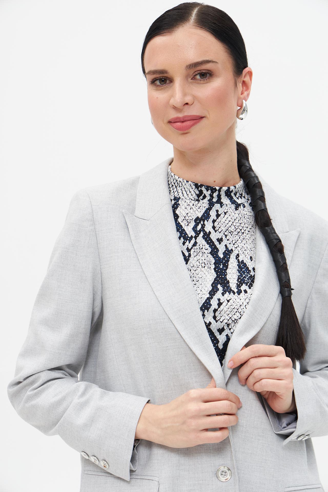 - Цвет: Нежный серый оттенок жакета гармонично дополнит любую палитру вашего гардероба, привнося нотку изысканности.