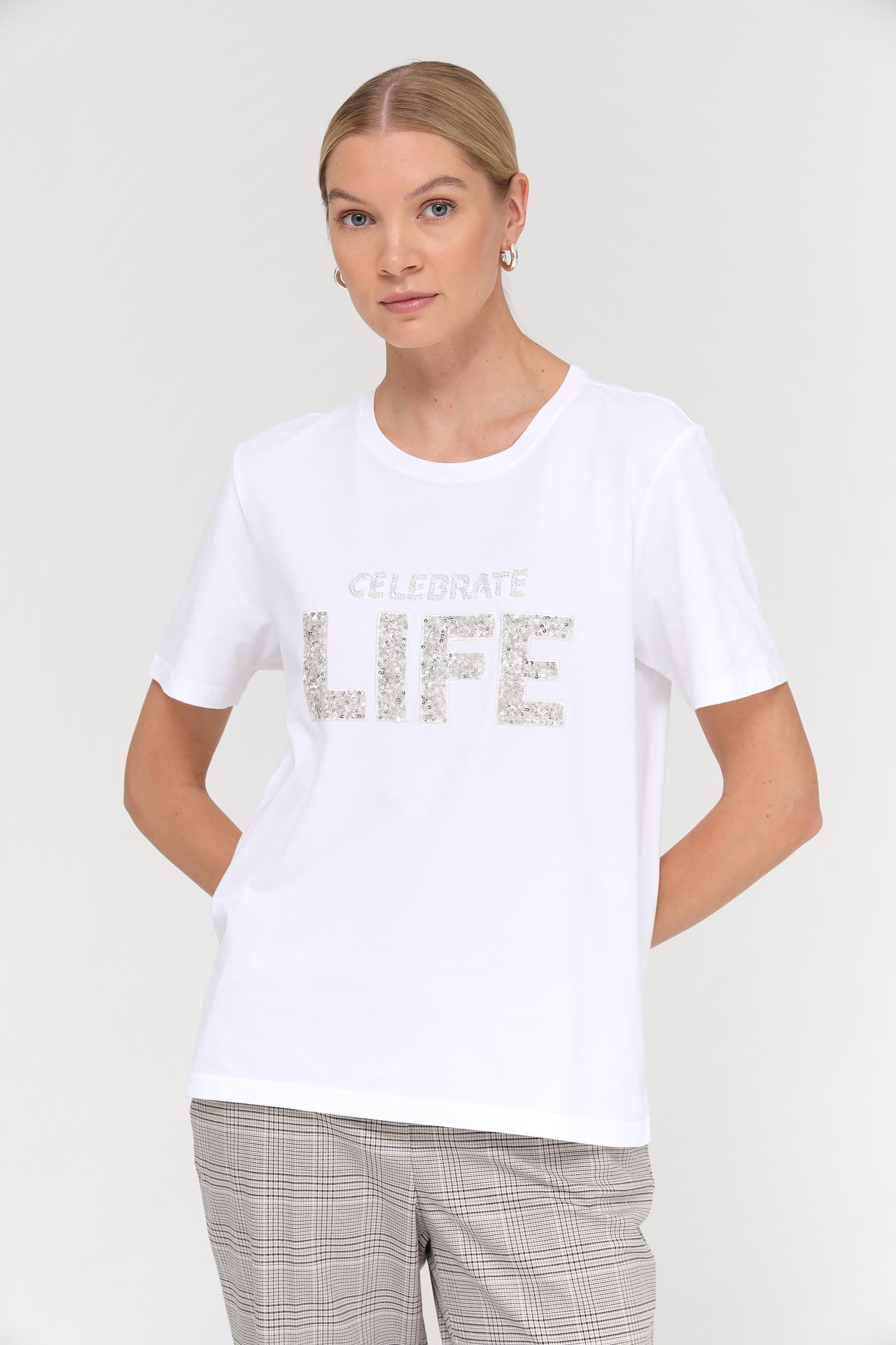 - Дизайн. Классический крой и лаконичный дизайн с надписью делают футболку универсальной.