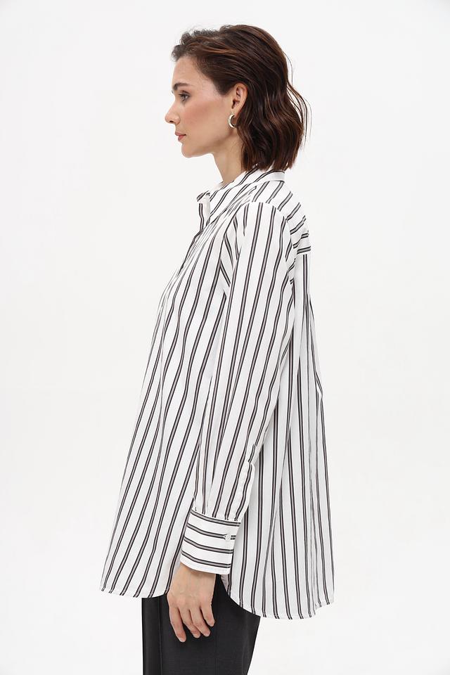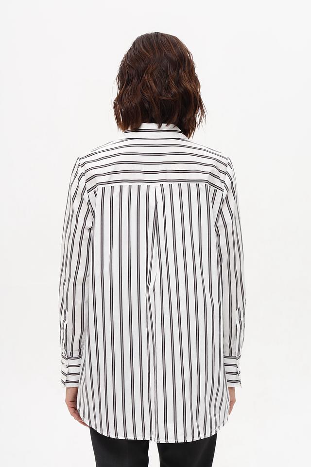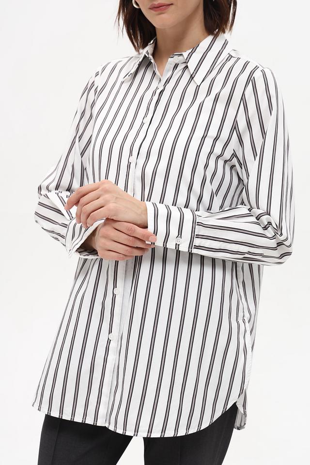 Женская рубашка Marc Aurel белого цвета в классическую полоску. Изготовлена из 100% хлопка, отличается свободным кроем и длинными рукавами с манжетами. Состав: хлопок 100%