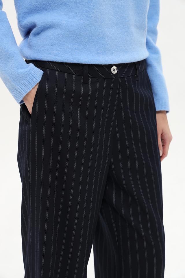 Женские брюки Marc Aurel классического кроя, выполнены в чёрно-белую полоску. Модель отличается прямым силуэтом и зауженным низом, что обеспечивает комфортную посадку и стильный образ. Состав: полиэстер 64%, вискоза 35%, эластан 1%