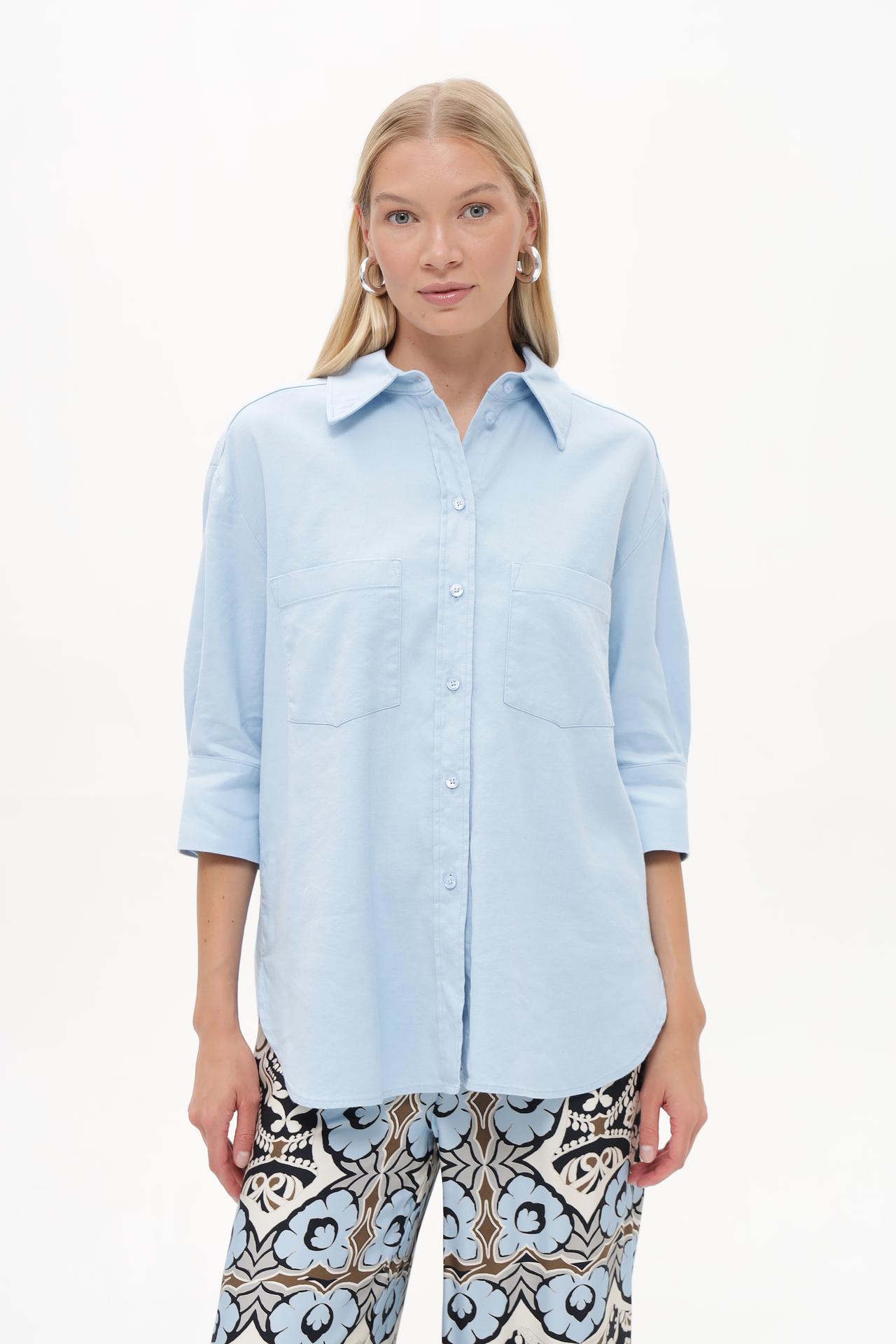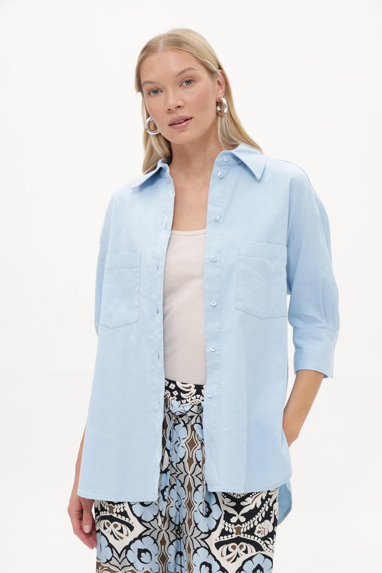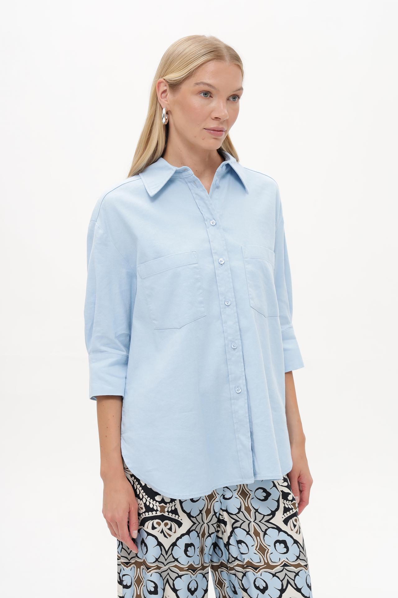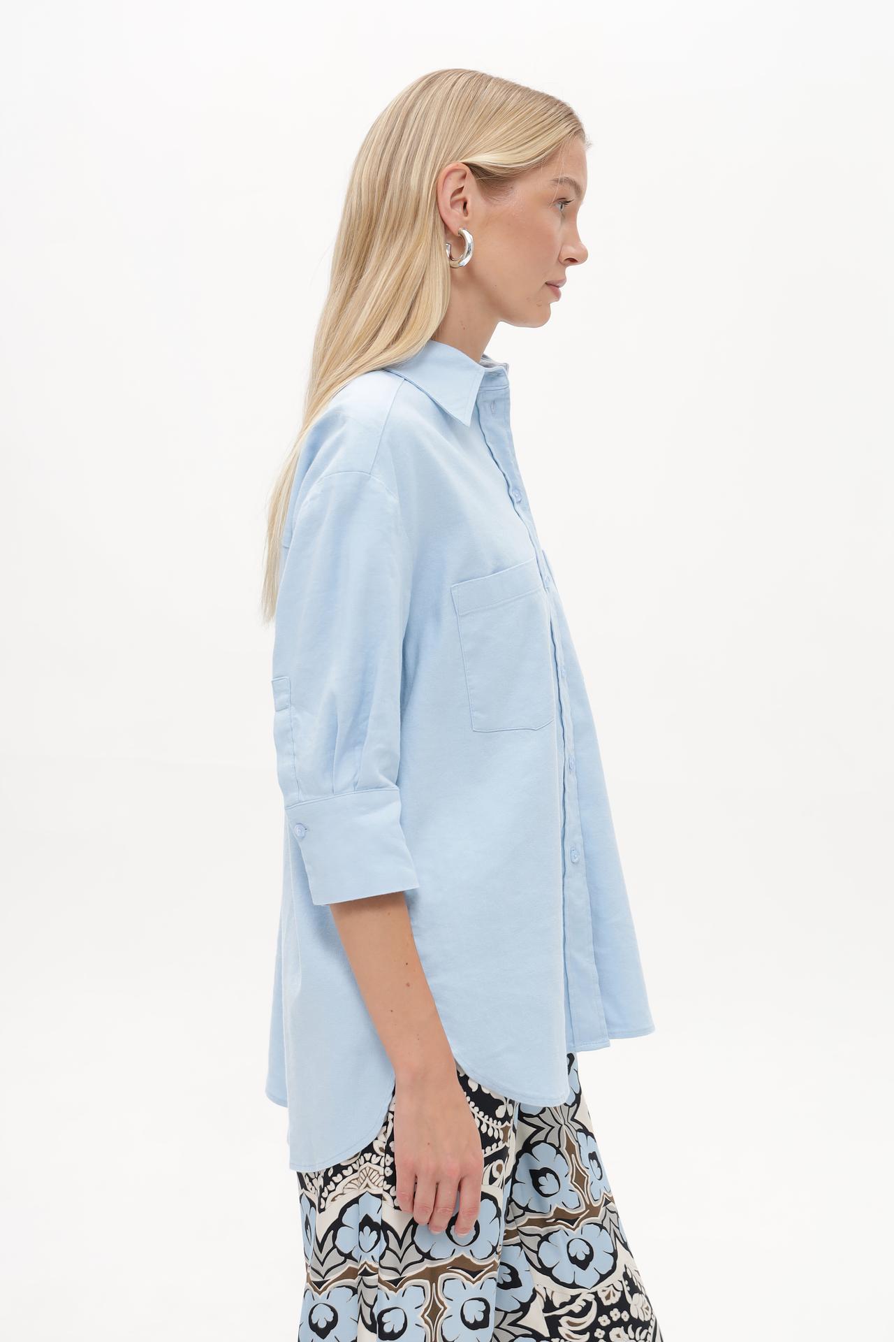 - Универсальный дизайн: Классический крой и нежный голубой цвет делают эту блузу универсальной для любого случая. Ее легко сочетать с различными элементами гардероба, создавая стильные и гармоничные образы.
