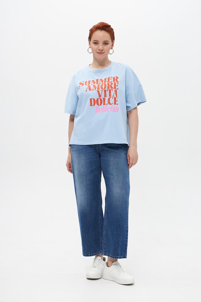 Женская футболка Marc Aurel голубого цвета с ярким принтом. Выполнена из 100% хлопка, обеспечивающего комфорт в носке. Идеальный выбор для создания легкого летнего образа. Состав: хлопок 100%