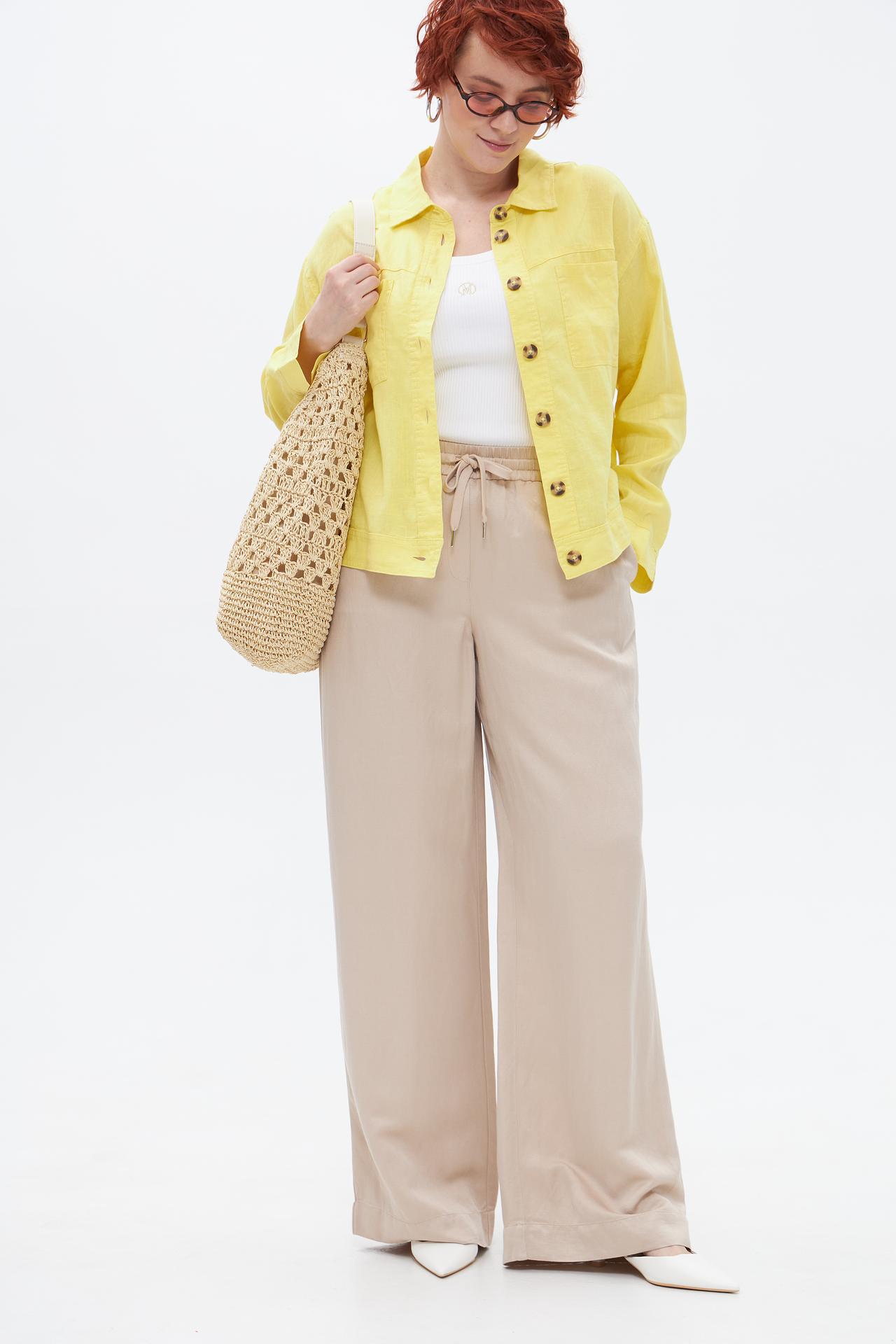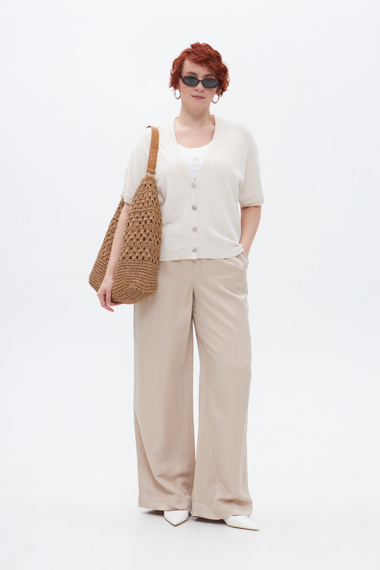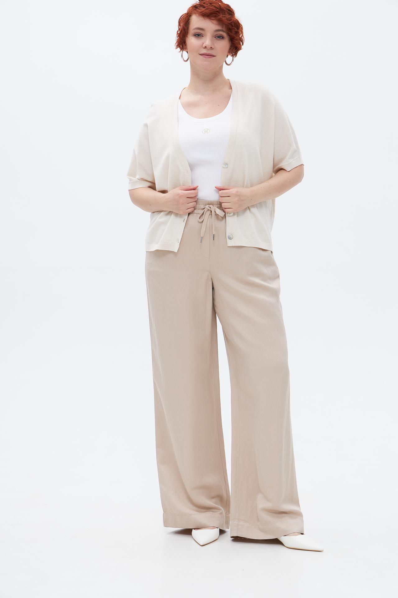 - Свободный крой: Широкие брючины обеспечивают максимальный комфорт и не сковывают движения, создавая элегантный и расслабленный силуэт. Этот крой визуально вытягивает силуэт, делая его более стройным.