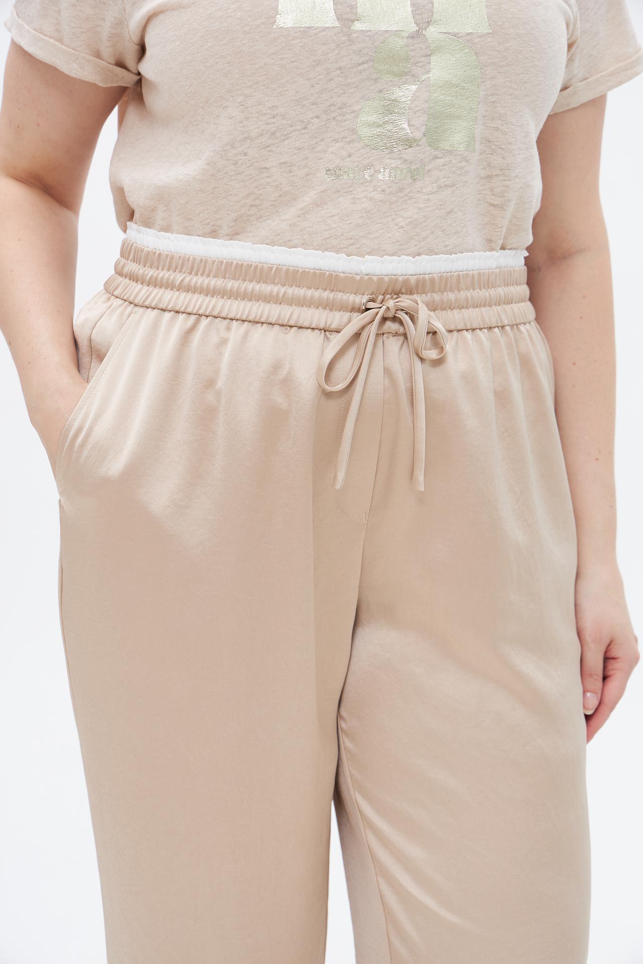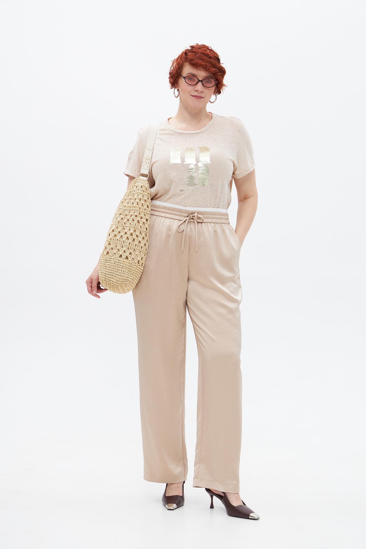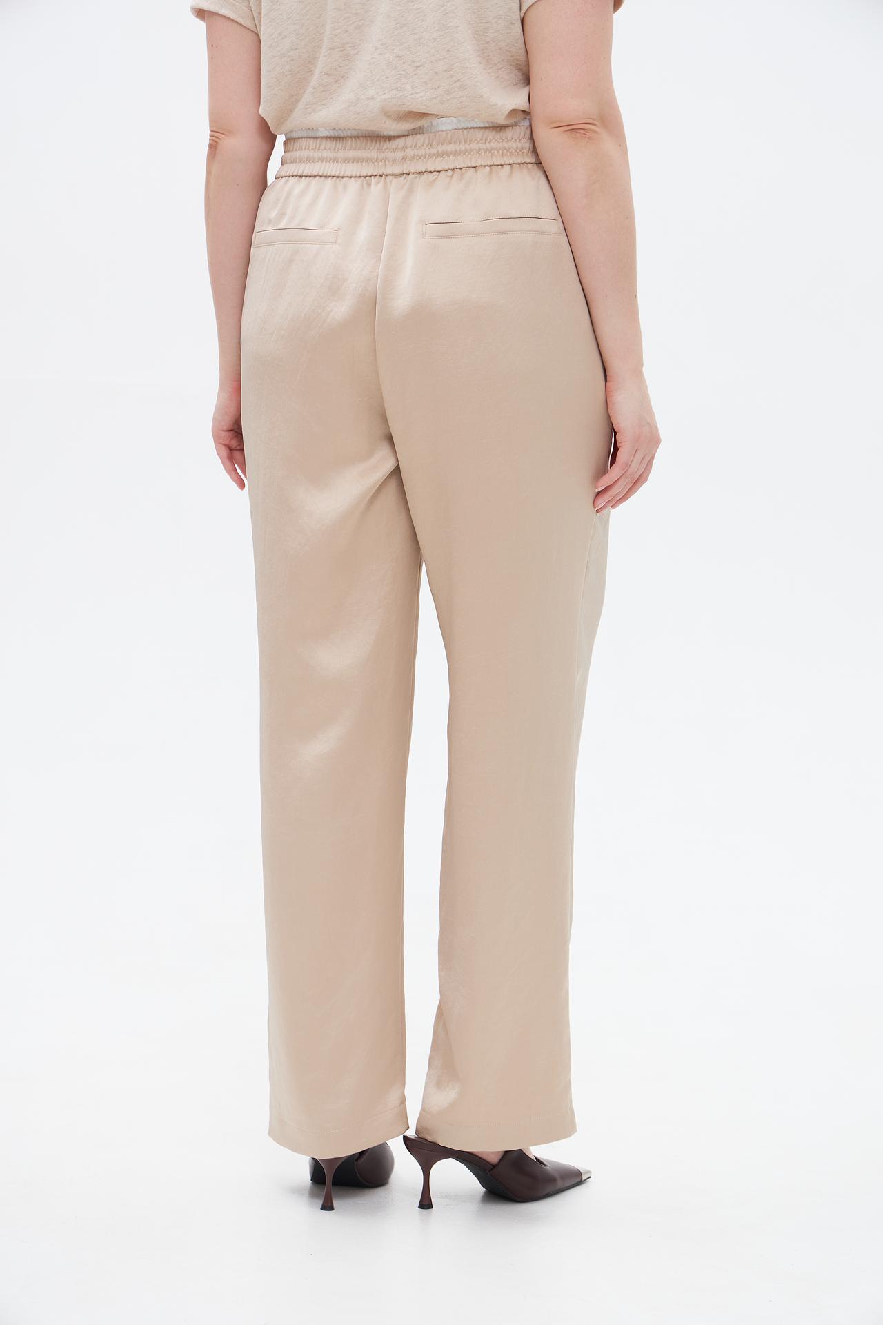 - Высококачественный материал: 100% полиэстер обеспечивает долговечность и сохранение формы, а его мягкая, струящаяся фактура придает брюкам изысканный вид.
