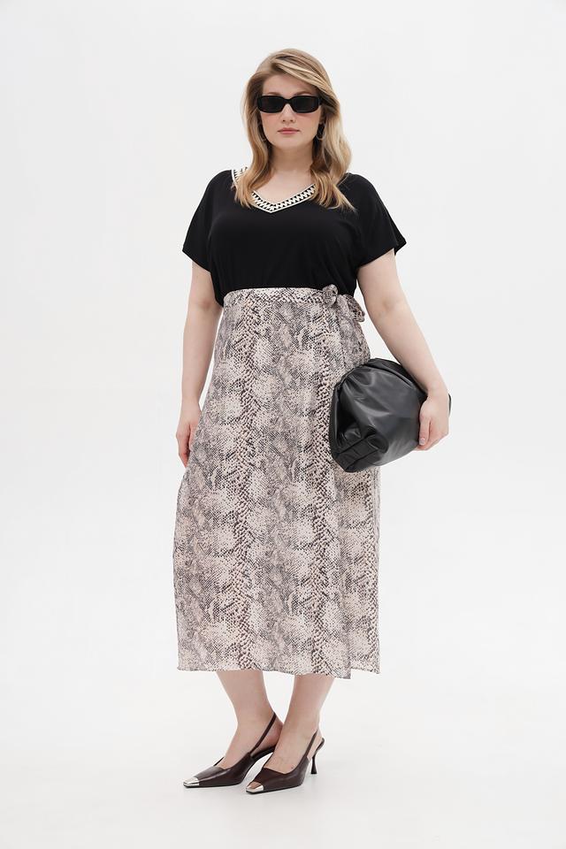 Эта юбка от Marc Aurel – идеальный выбор для создания элегантного и современного образа. Выполнена в бежевой цветовой гамме с эффектным принтом, имитирующим змеиную кожу, что придает ей особую изысканность.