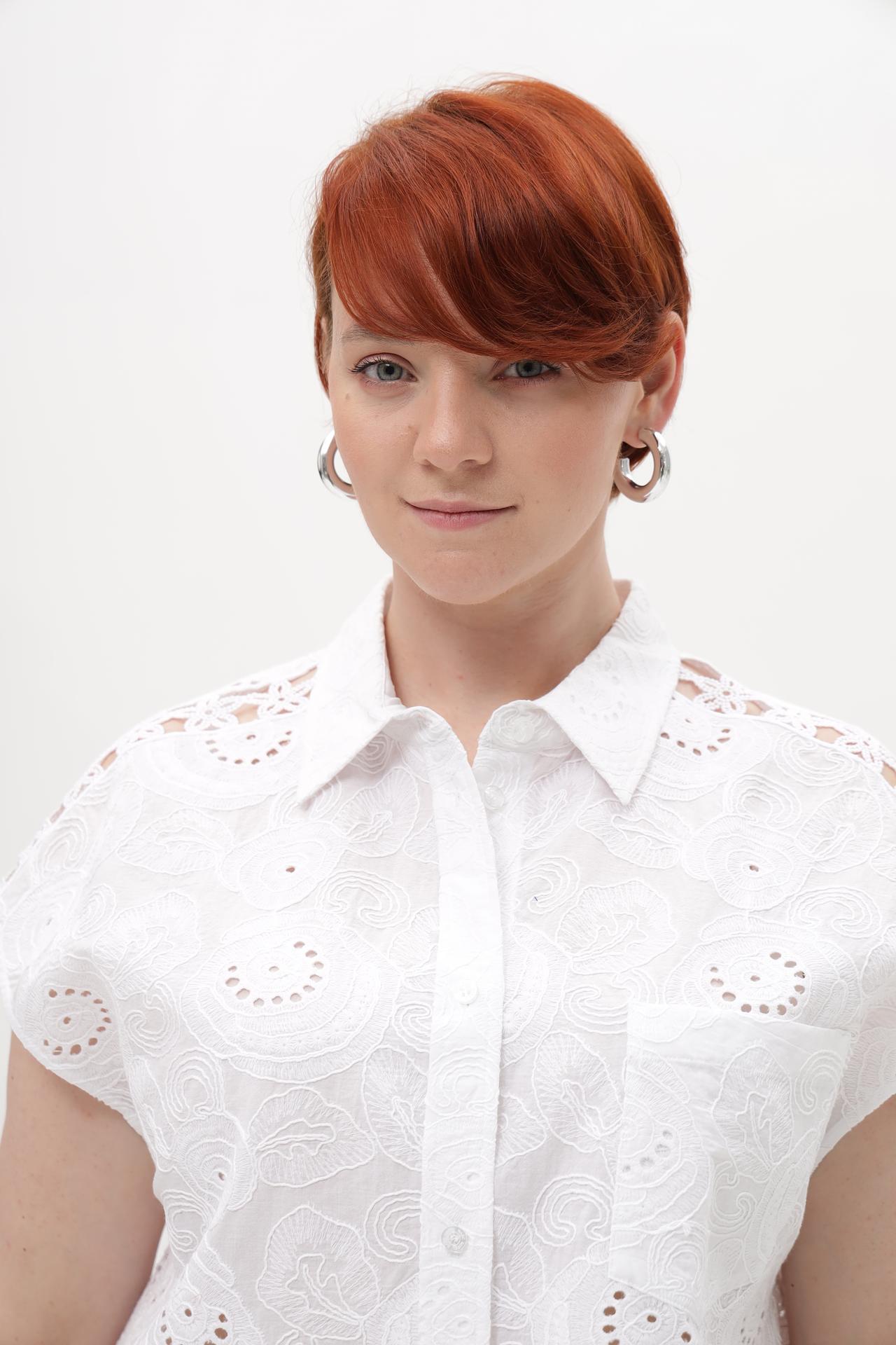- Перфорированный дизайн. Оригинальная перфорация придает блузе легкость и воздушность, делая ее идеальной для летнего сезона.