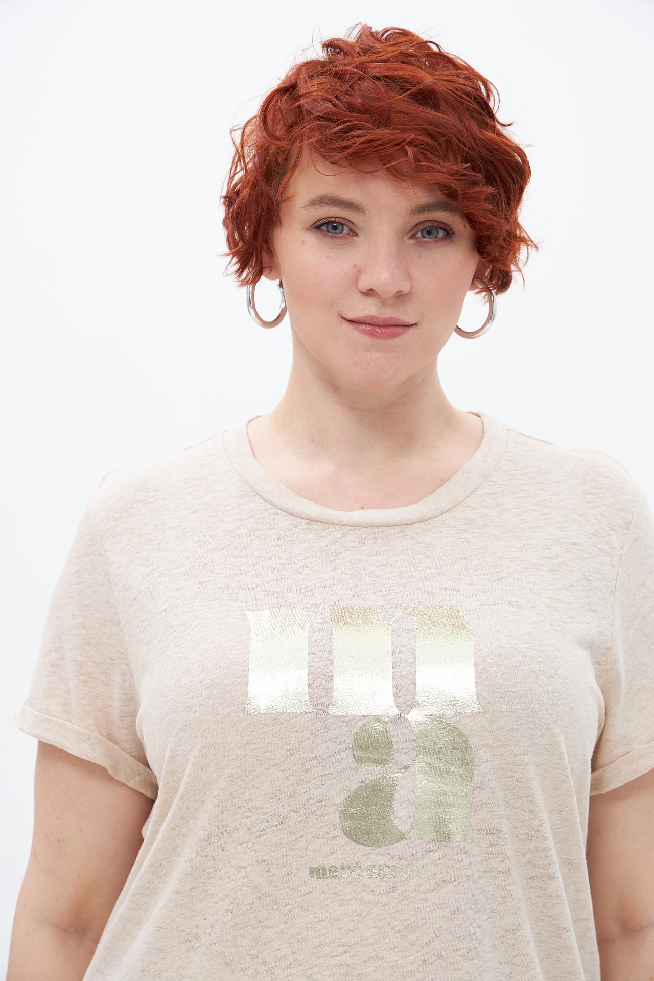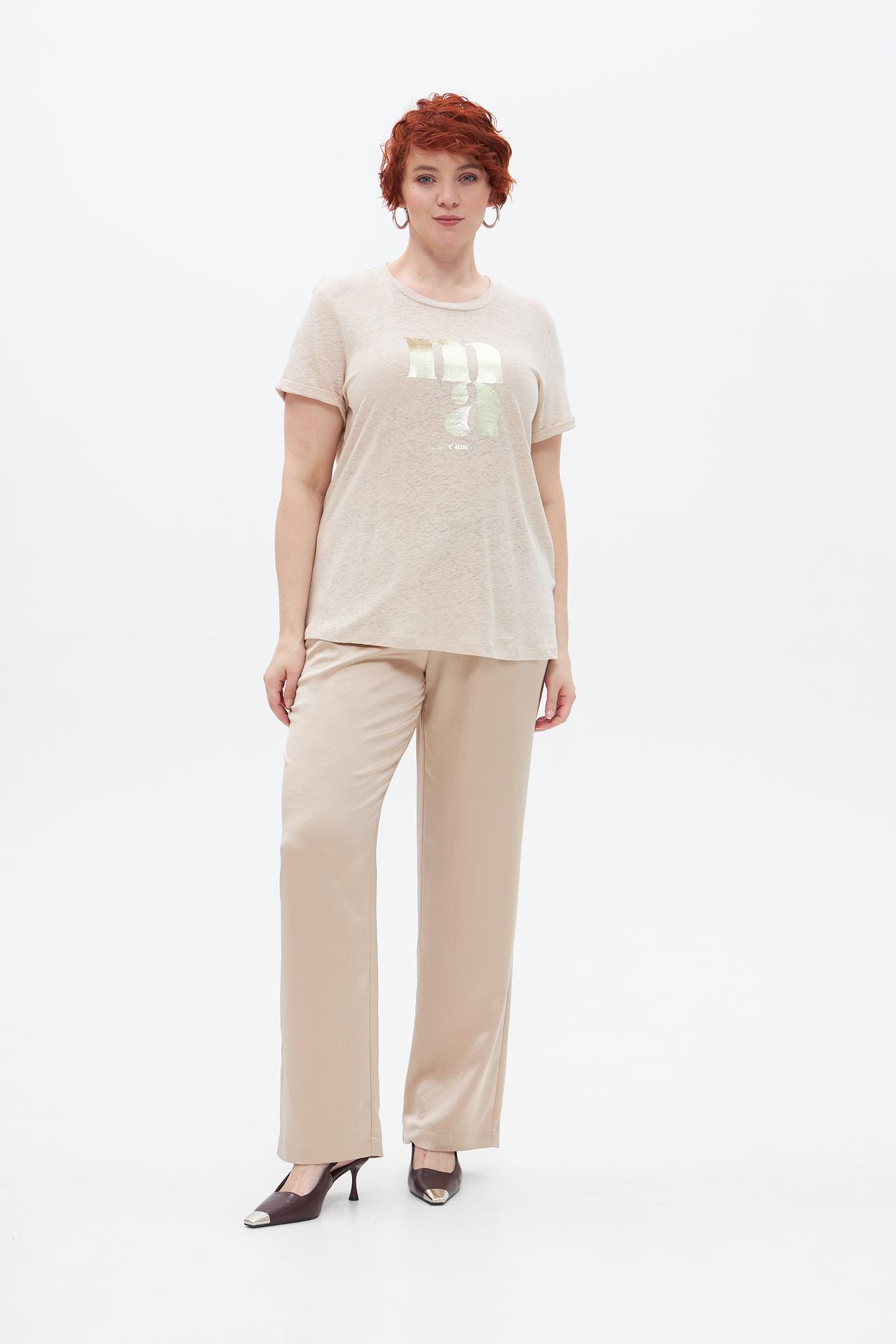 - Элегантный дизайн: Бежевый цвет и изысканный металлизированный принт "MA" на груди придают футболке утонченный вид. Легко сочетается как с повседневными джинсами, так и с элегантными брюками или юбками.
