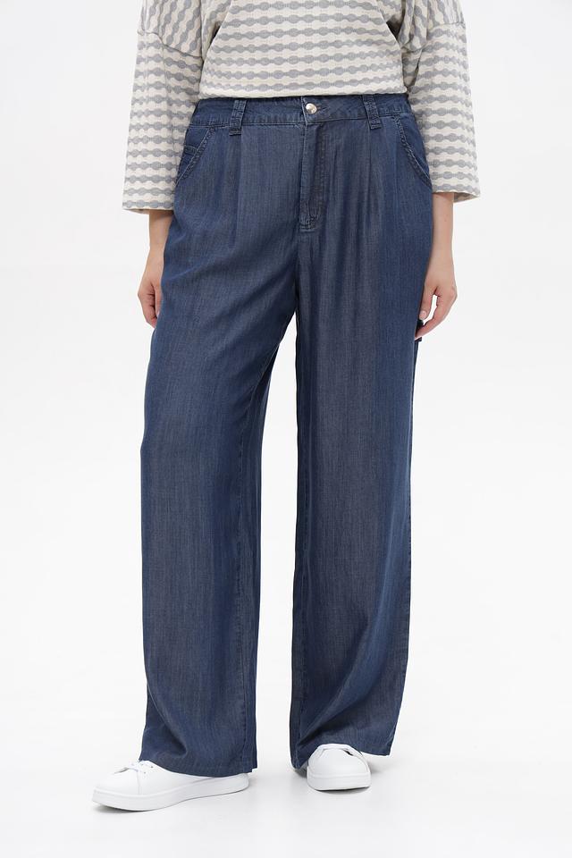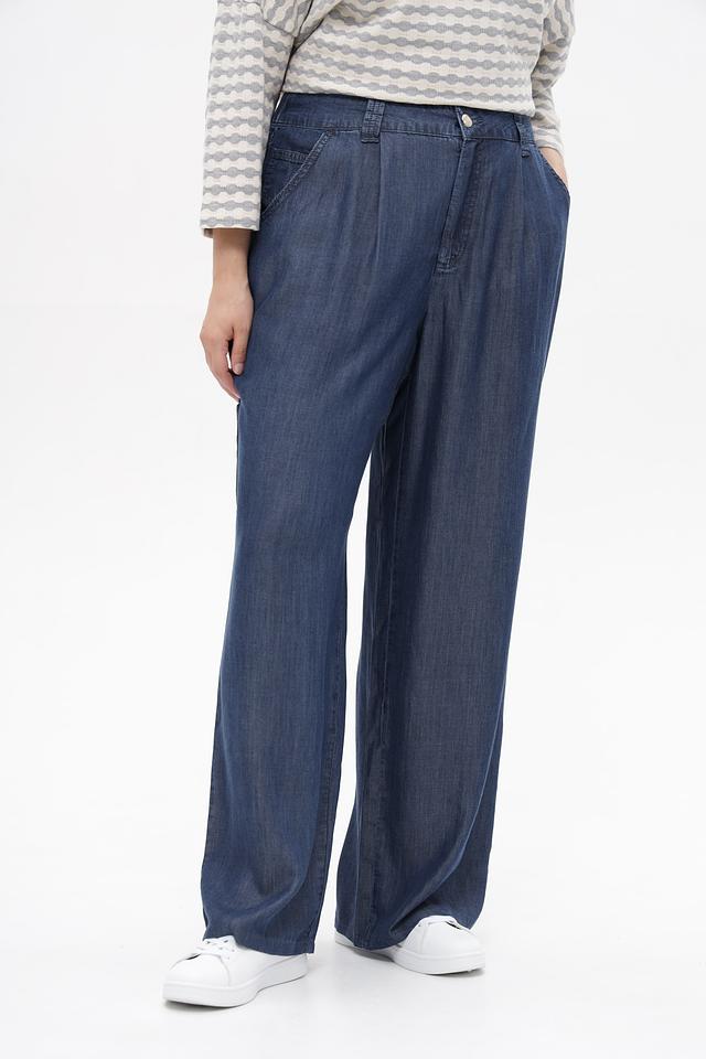 Классический синий цвет делает эти брюки универсальными и легко сочетаемыми с различными элементами одежды. Завышенная талия и широкие складки создают элегантный силуэт и подчеркивают достоинства фигуры.