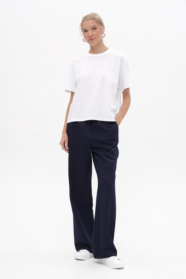 Классический крой клёш визуально удлиняет ноги и создает элегантный силуэт. Функциональные боковые карманы добавляют практичности. Брюки идеально подойдут для создания повседневных образов, а также для более формальных мероприятий в сочетании с подходящим верхом и аксессуарами. Состав: 91% полиэстер, 9% эластан.