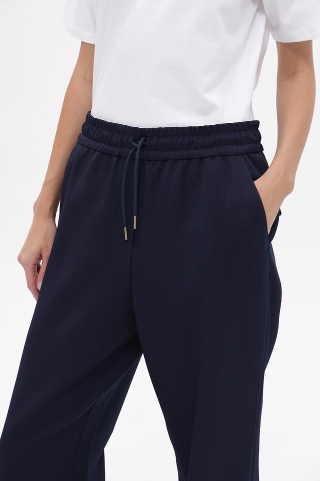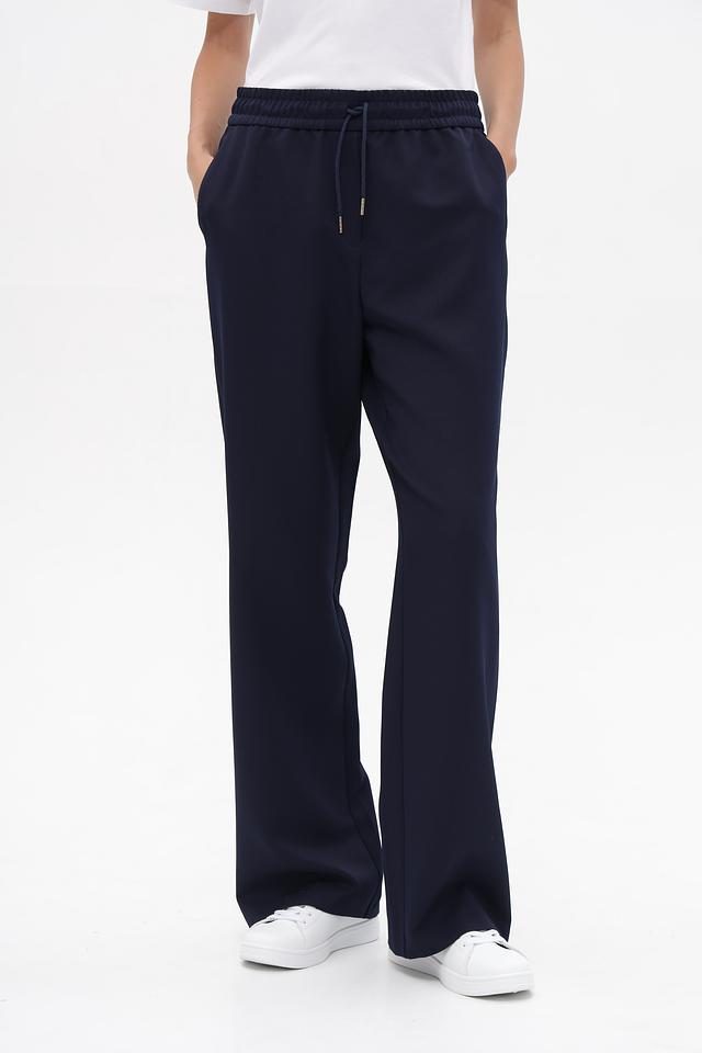 Брюки изготовлены из качественного полиэстера с добавлением эластана, что обеспечивает комфорт в носке и сохранение формы. Талия оформлена эластичной резинкой с регулирующими завязками, обеспечивающими идеальную посадку.