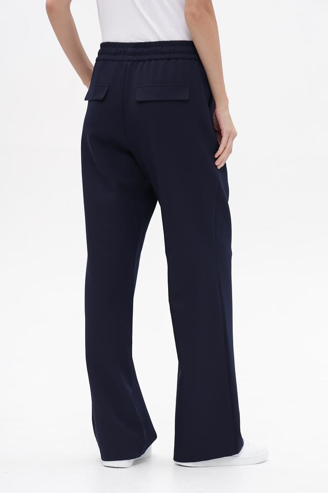 Синие брюки клёш от Marc Aurel из полиэстера с эластаном. Модель с завязками на талии и функциональными карманами. Подходят для создания повседневных образов. Состав: полиэстер 91%, эластан 9%
