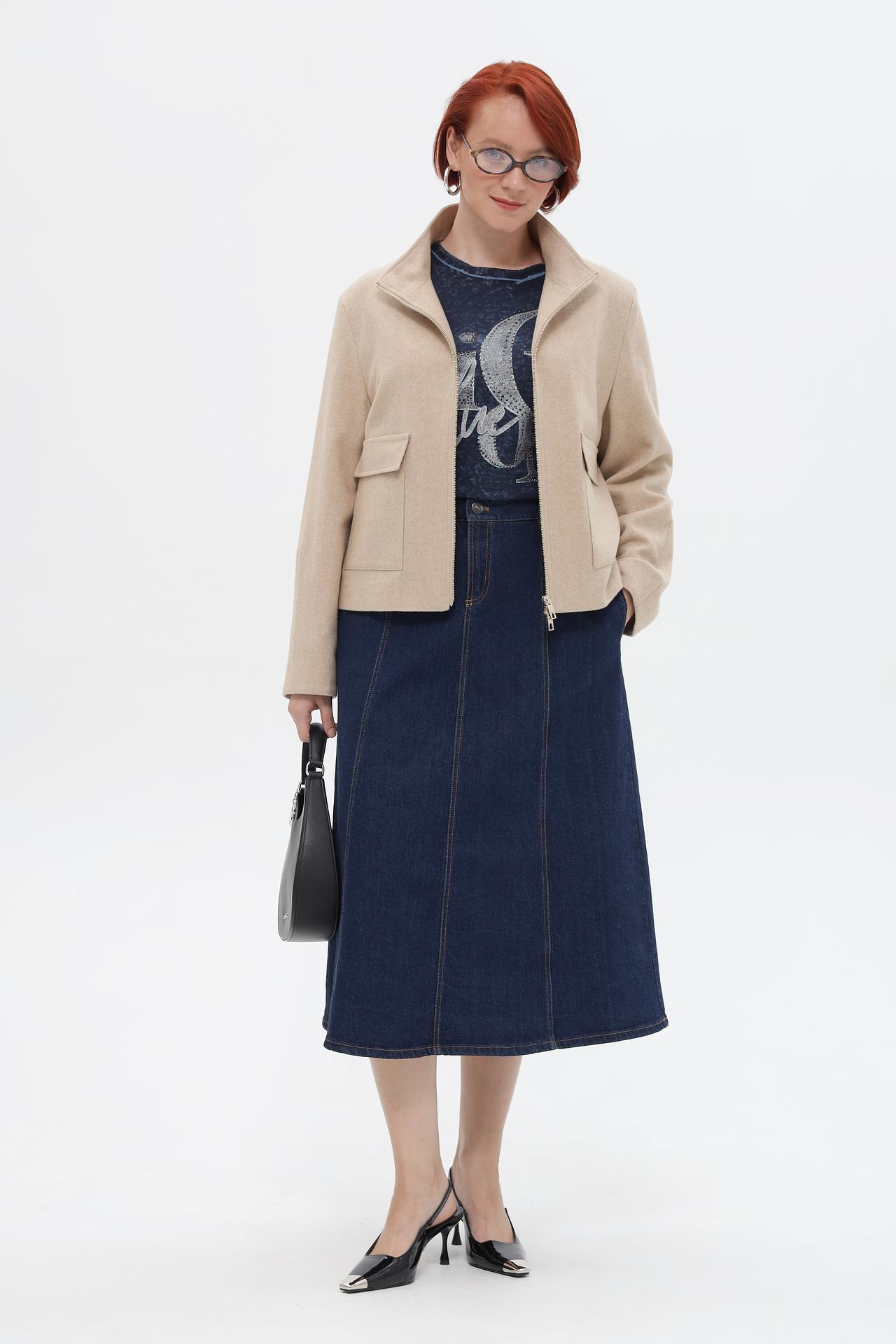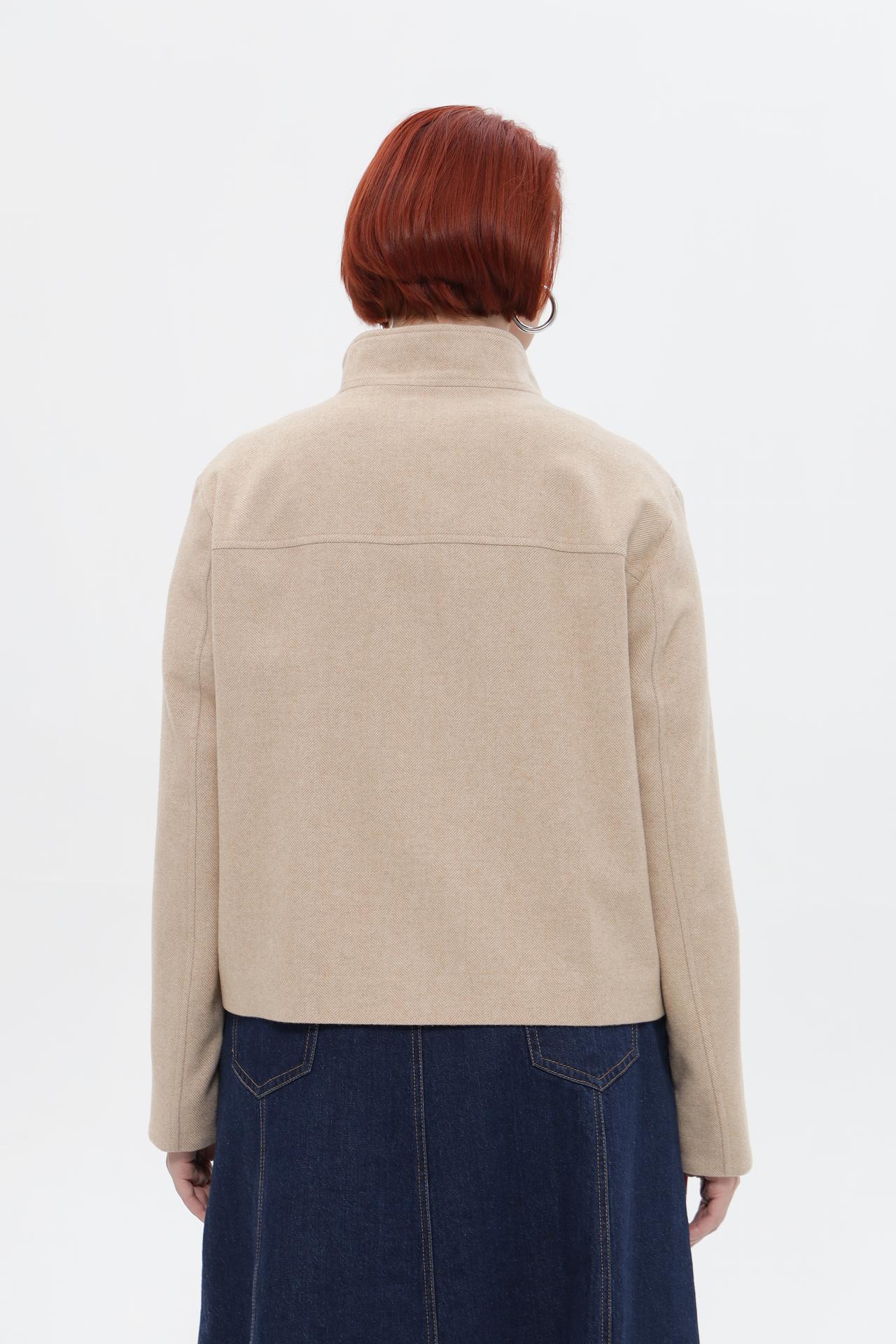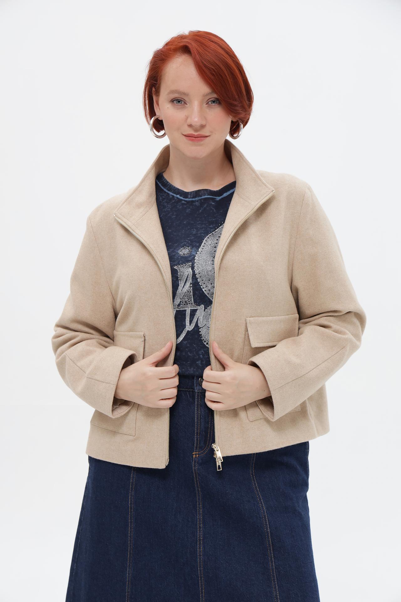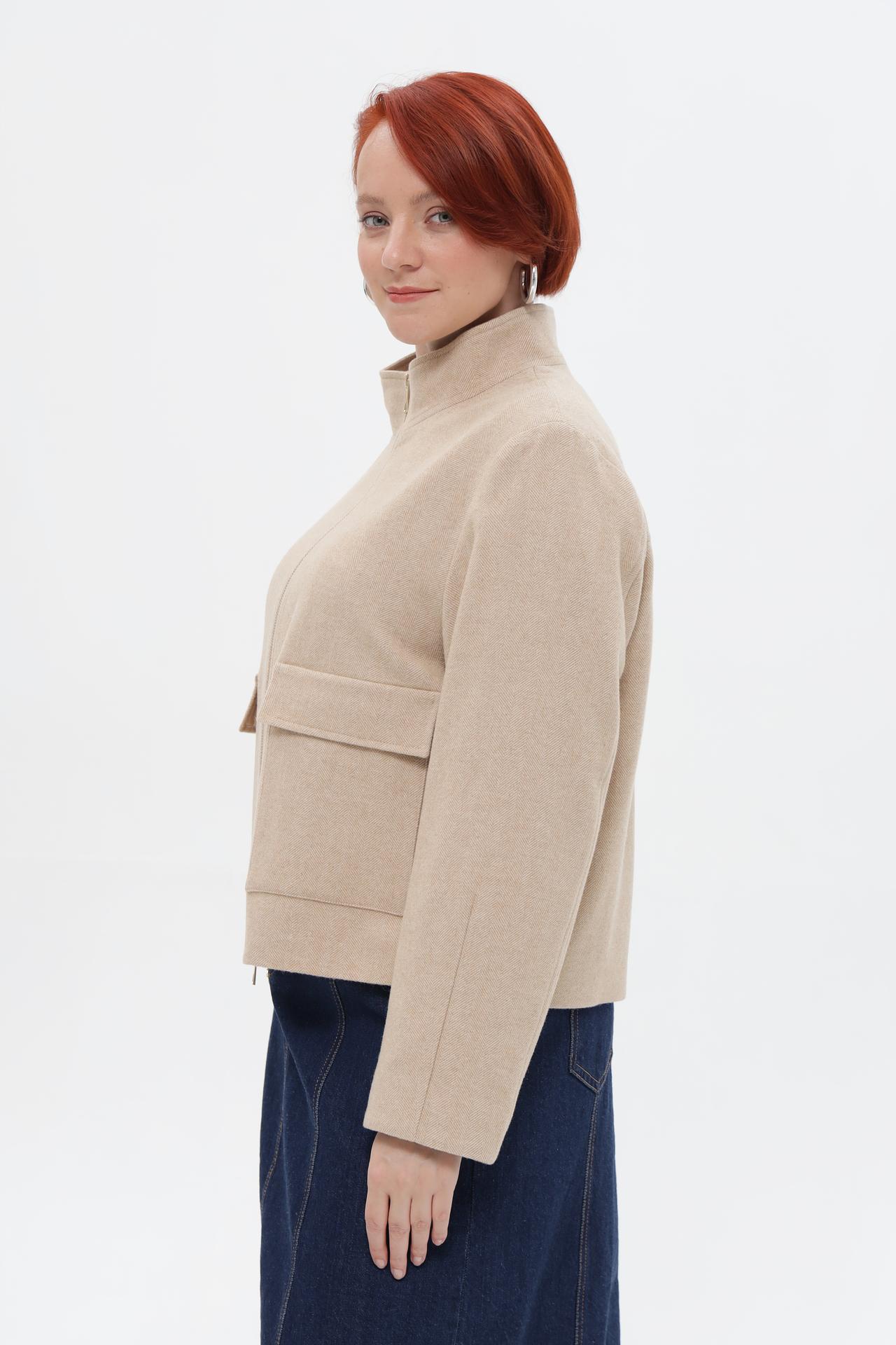 - Дизайн: Прямой укороченный крой, воротник-стойка и два накладных кармана с клапанами придают изделию современный и лаконичный вид. Центральная застежка-молния облегчает процесс надевания и снимания.