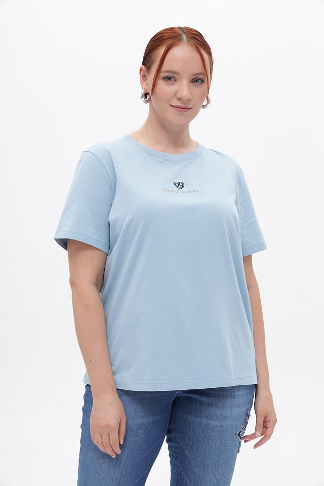 Женская футболка Marc Aurel голубого цвета, выполнена из 100% хлопка. Прямой крой и округлый вырез горловины обеспечивают комфортную посадку. Логотип бренда на груди. Состав: хлопок 100%
