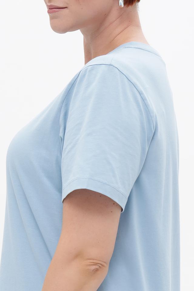 Эта футболка станет отличной базовой вещью в вашем гардеробе, легко сочетаясь с джинсами, юбками или шортами. Она идеально подходит для создания как casual, так и более элегантных образов.
