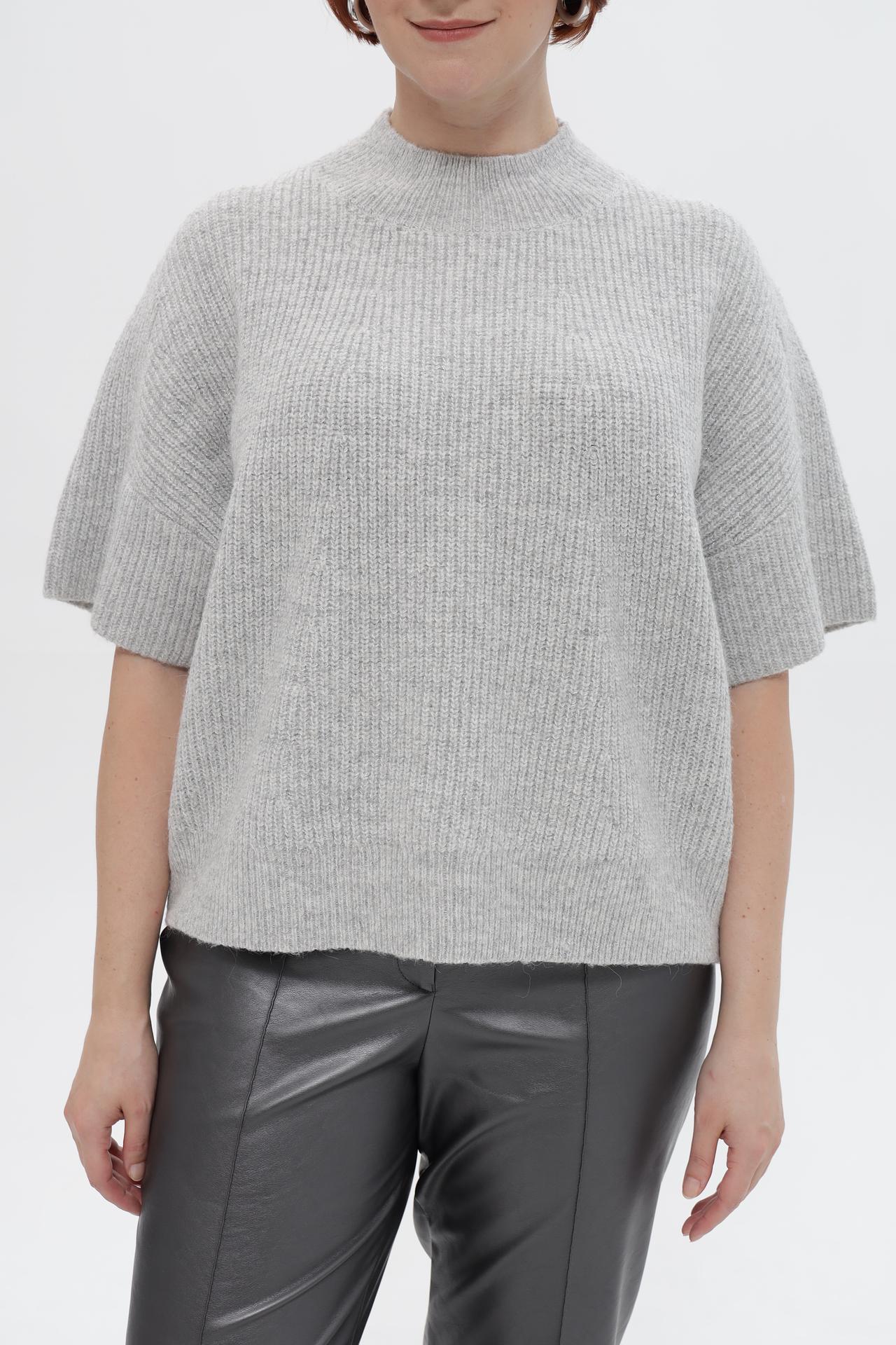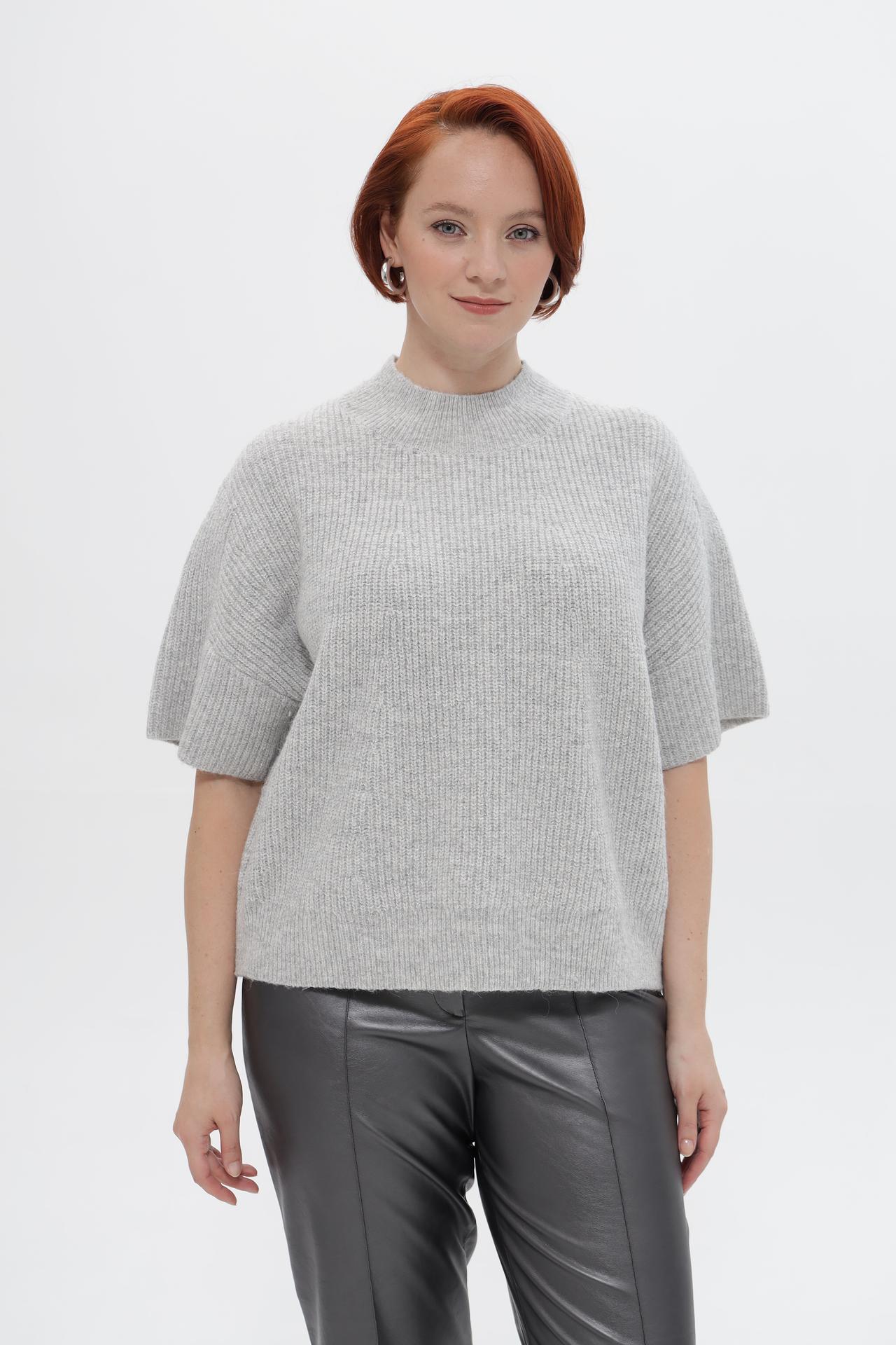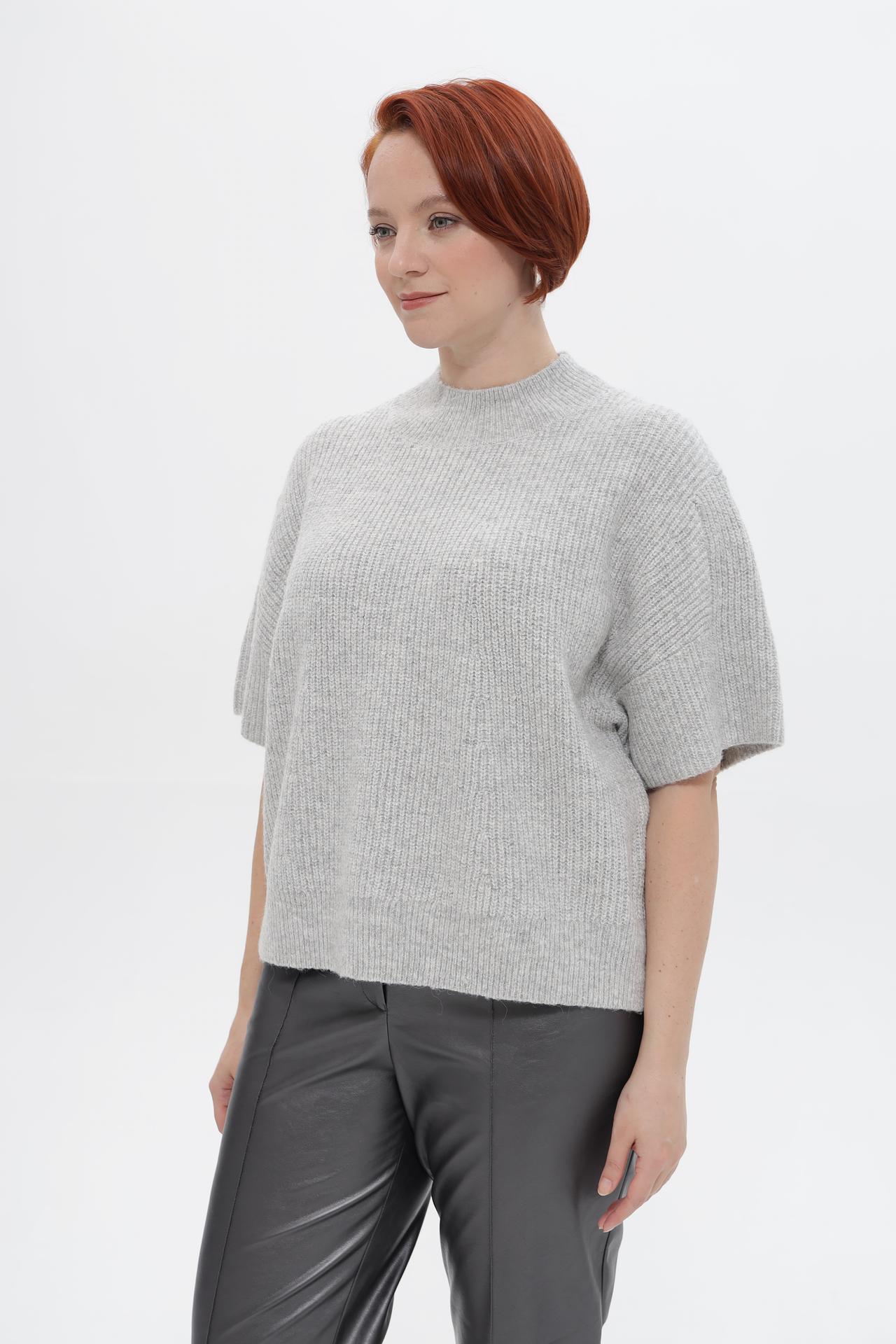 Укороченный пуловер Marc Aurel в актуальном сером цвете — стильное дополнение вашего гардероба. Модель с коротким рукавом и воротником-стойкой выполнена из высококачественной смесовой пряжи, обеспечивающей комфорт и долговечность. Вертикальная вязка визуально стройнит фигуру, а свободный крой дарит ощущение легкости. Этот пуловер станет универсальной базой для создания множества образов, от повседневных до более элегантных.