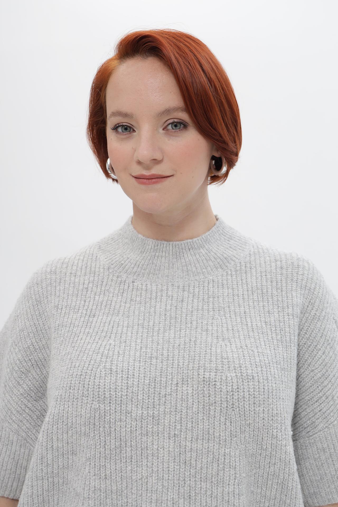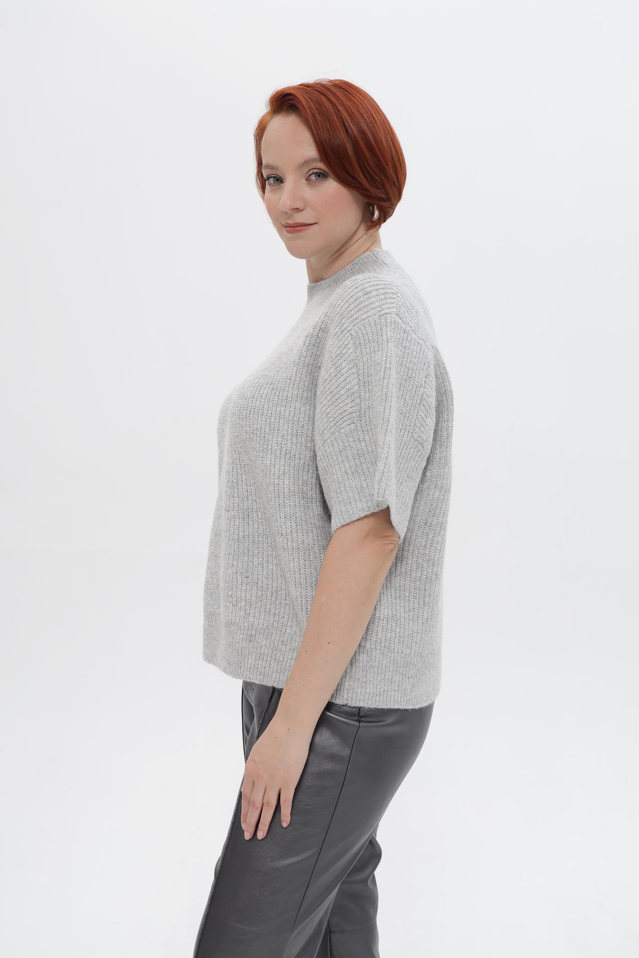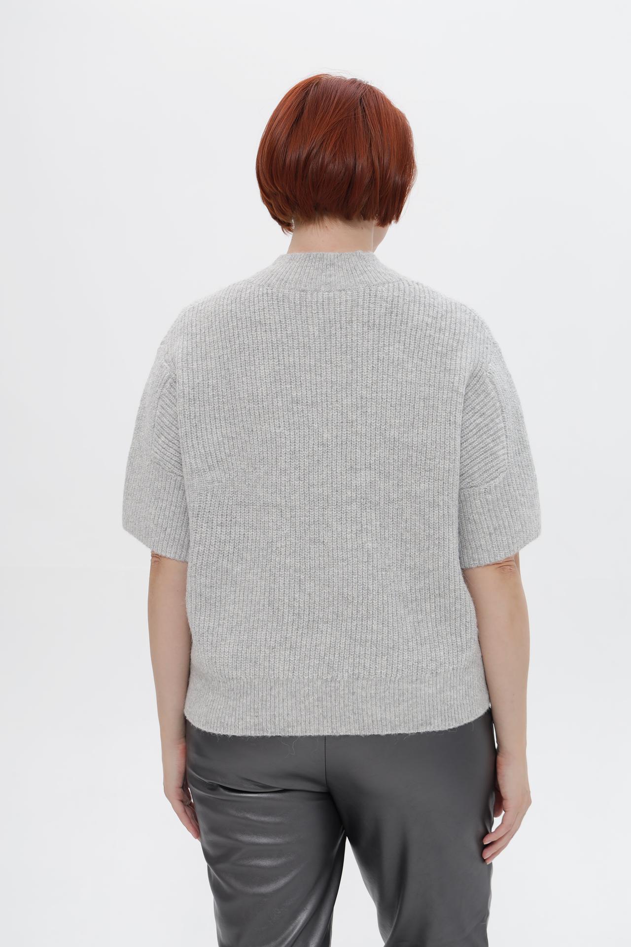 Укороченный пуловер Marc Aurel в актуальном сером цвете — стильное дополнение вашего гардероба. Модель с коротким рукавом и воротником-стойкой выполнена из высококачественной смесовой пряжи, обеспечивающей комфорт и долговечность. Вертикальная вязка визуально стройнит фигуру, а свободный крой дарит ощущение легкости. Этот пуловер станет универсальной базой для создания множества образов, от повседневных до более элегантных.