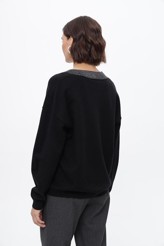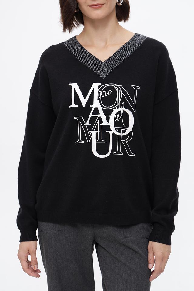 Чёрный пуловер Marc Aurel с декоративным вышитым логотипом. Изготовлен из мягкой вискозы с добавлением полиэстера и полиамида. Состав изделия включает метализированную нить для сияющего эффекта. Состав: вискоза 49%, полиэстер 28%, полиамид 22%, метализ.нить 1%