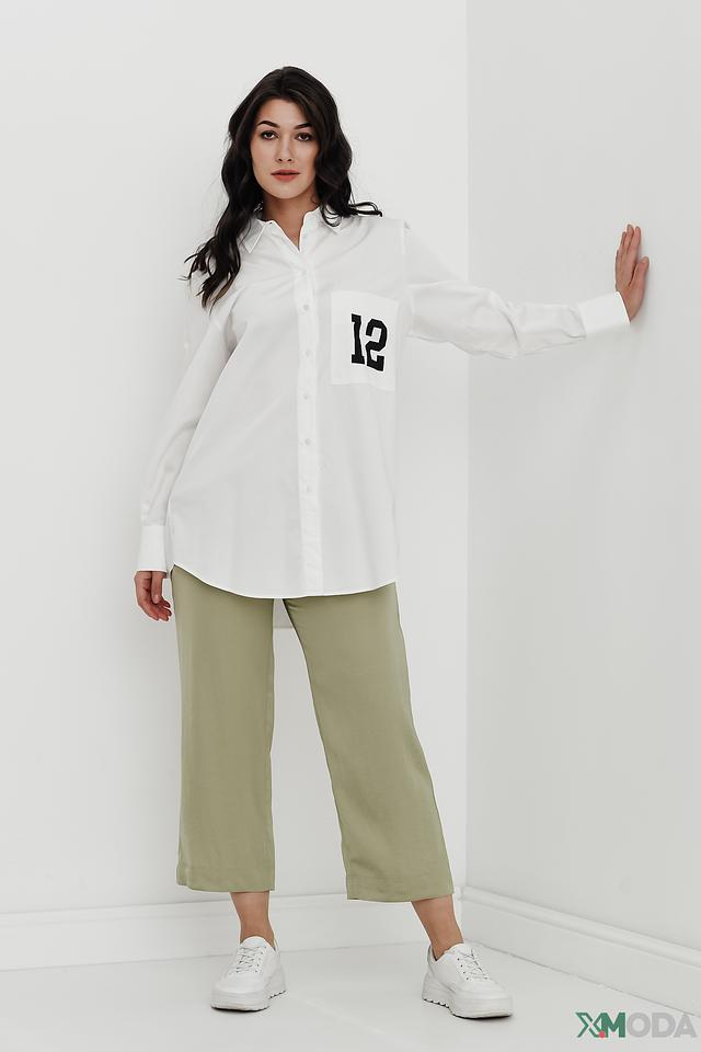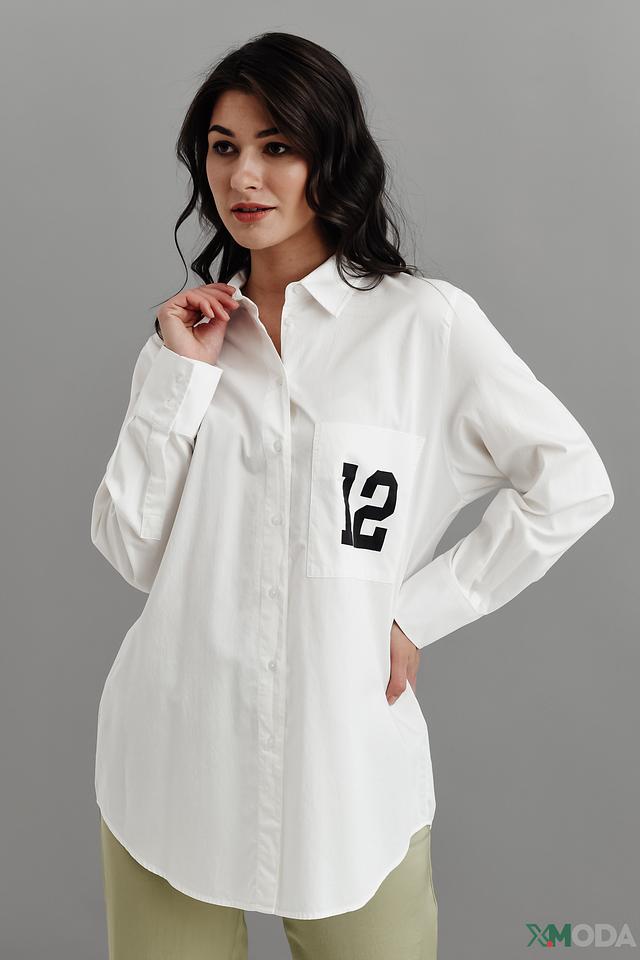Рубашка имеет прямой, слегка свободный крой, который обеспечивает комфорт в носке. Длинные рукава и классический отложной воротник придают ей элегантный вид. На нагрудном кармане расположен оригинальный принт с цифрой "12", который добавляет рубашке индивидуальности.
