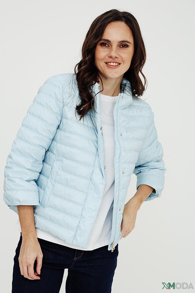 Эта куртка от Marc Cain выполнена в нежном голубом цвете и имеет стеганую текстуру. Модель отличается легким весом и удобной посадкой, что делает ее идеальным выбором для повседневной носки.