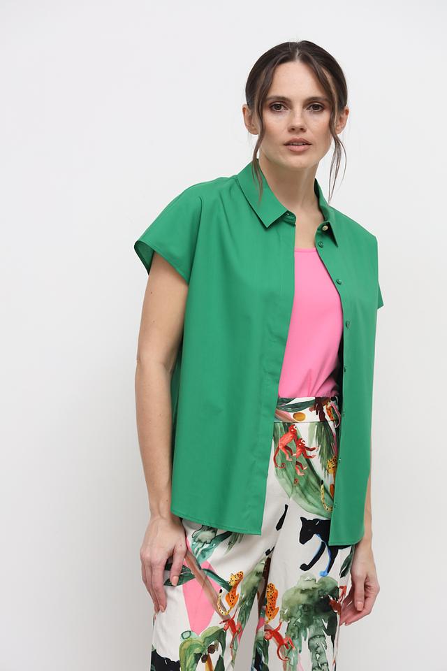 Зелёная рубашка Marc Cain с коротким рукавом – стильное и комфортное решение для создания повседневных образов. Модель выполнена из высококачественного лиоцела и хлопка, обеспечивающих приятные тактильные ощущения и воздухопроницаемость. Состав: лиоцел 70%, хлопок 30%