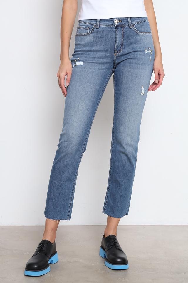 Джинсы Marc Cain голубого цвета — это стильная модель с эффектом потертостей и декоративными вышивками. Классический крой и комфортный состав обеспечивают удобную посадку и долговечность. Состав: хлопок 98%, эластан 2%